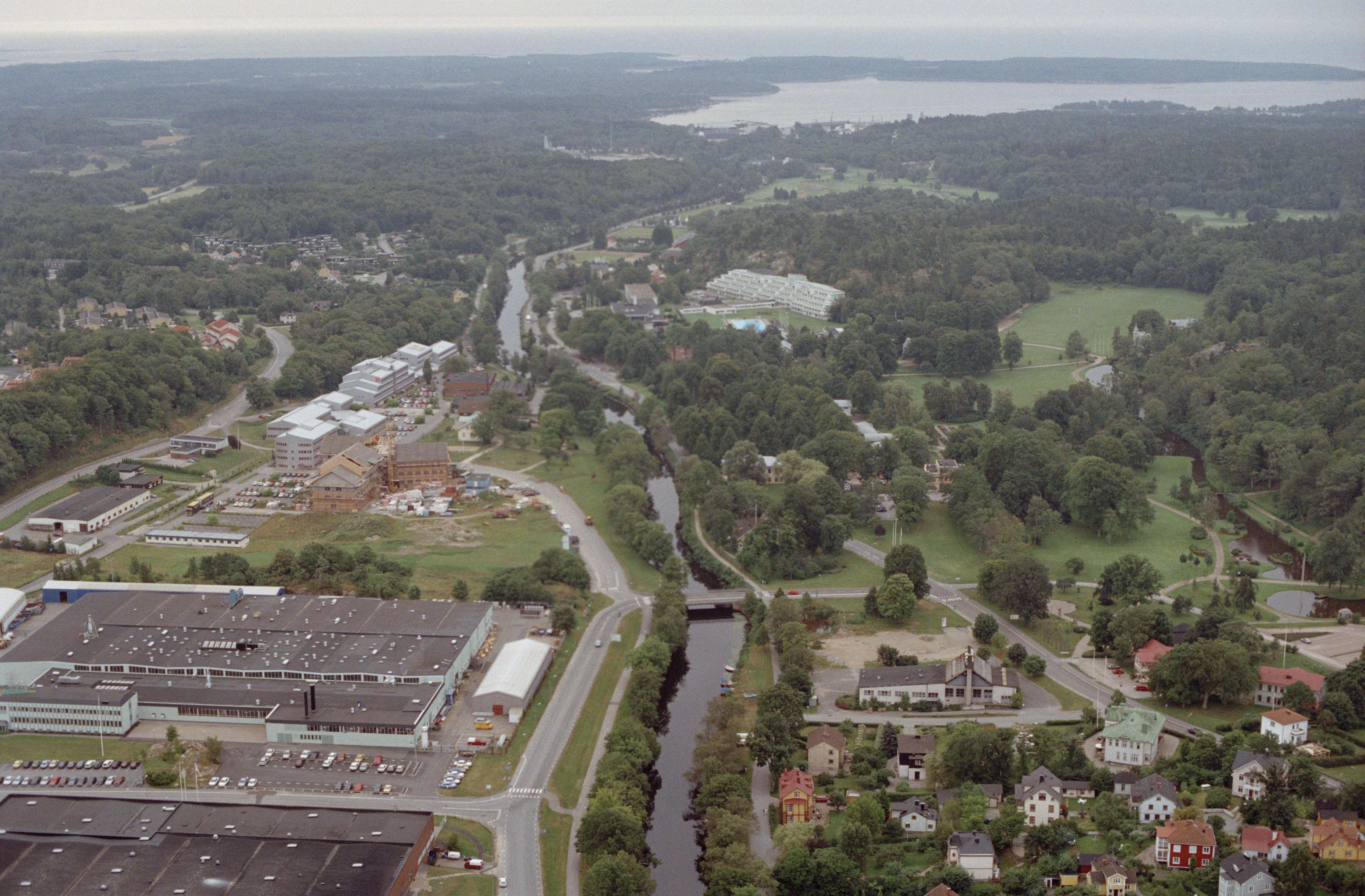Beskrivning: I bildens högra del Ronneby brunn vid Ronnebyån. Över bildens mitt fornborg Silverberget RAÄnr Ronneby 110:1. Området är kulturreservat och ingår i Södra Brunnsskogens naturreservat. Ronnebyfjärden i bildens övre del. Bilden är tagen mot (väderstreck): SSO