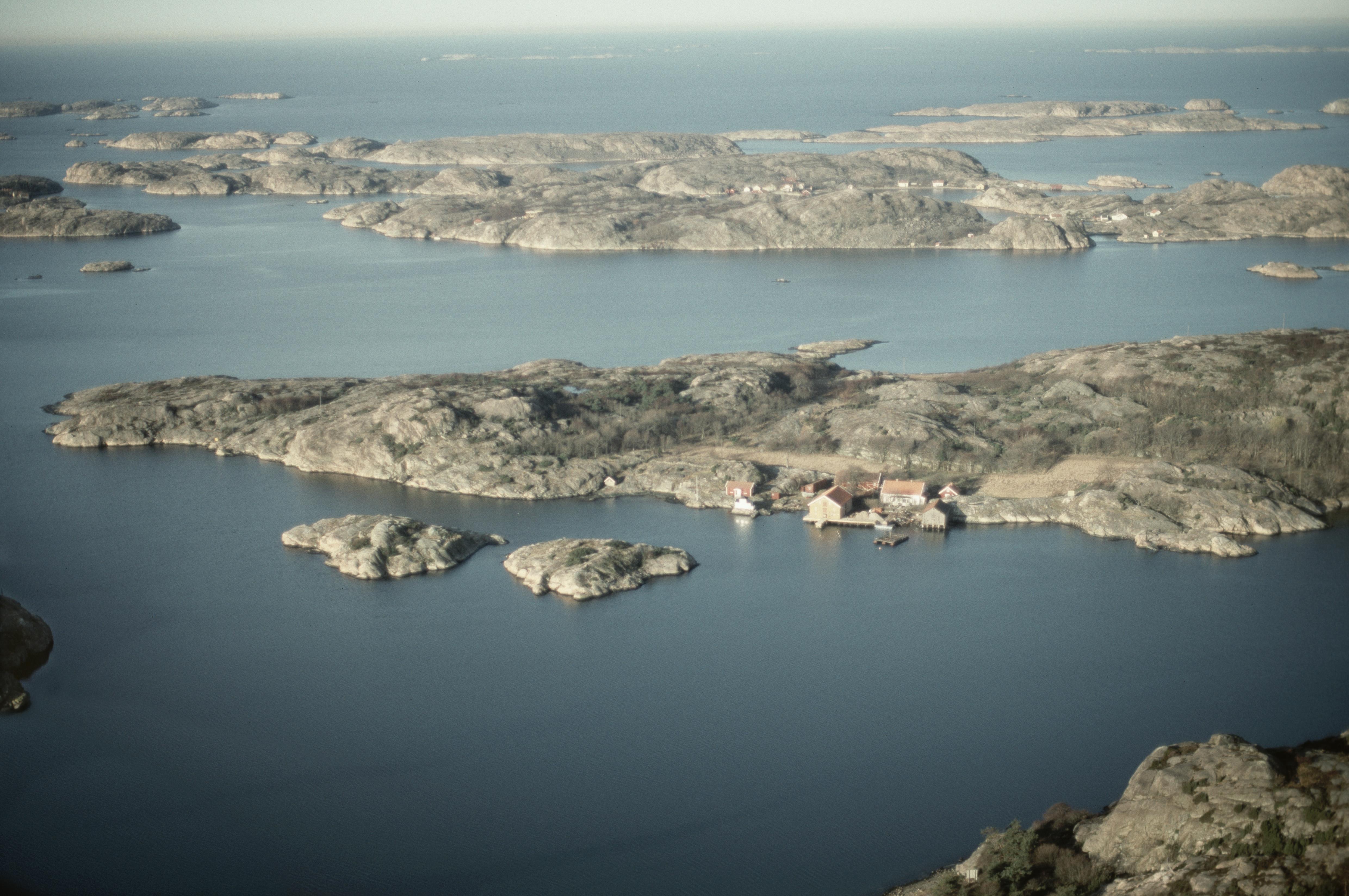 Beskrivning: Hjärterön i Fjällbackafjorden. Bringebärsholmen i bildens nedre del. På Hjärterön vid bildens mitt sillsalteri RAÄnr Kville 942:1 m.fl. Bilden är tagen mot (väderstreck): NV
