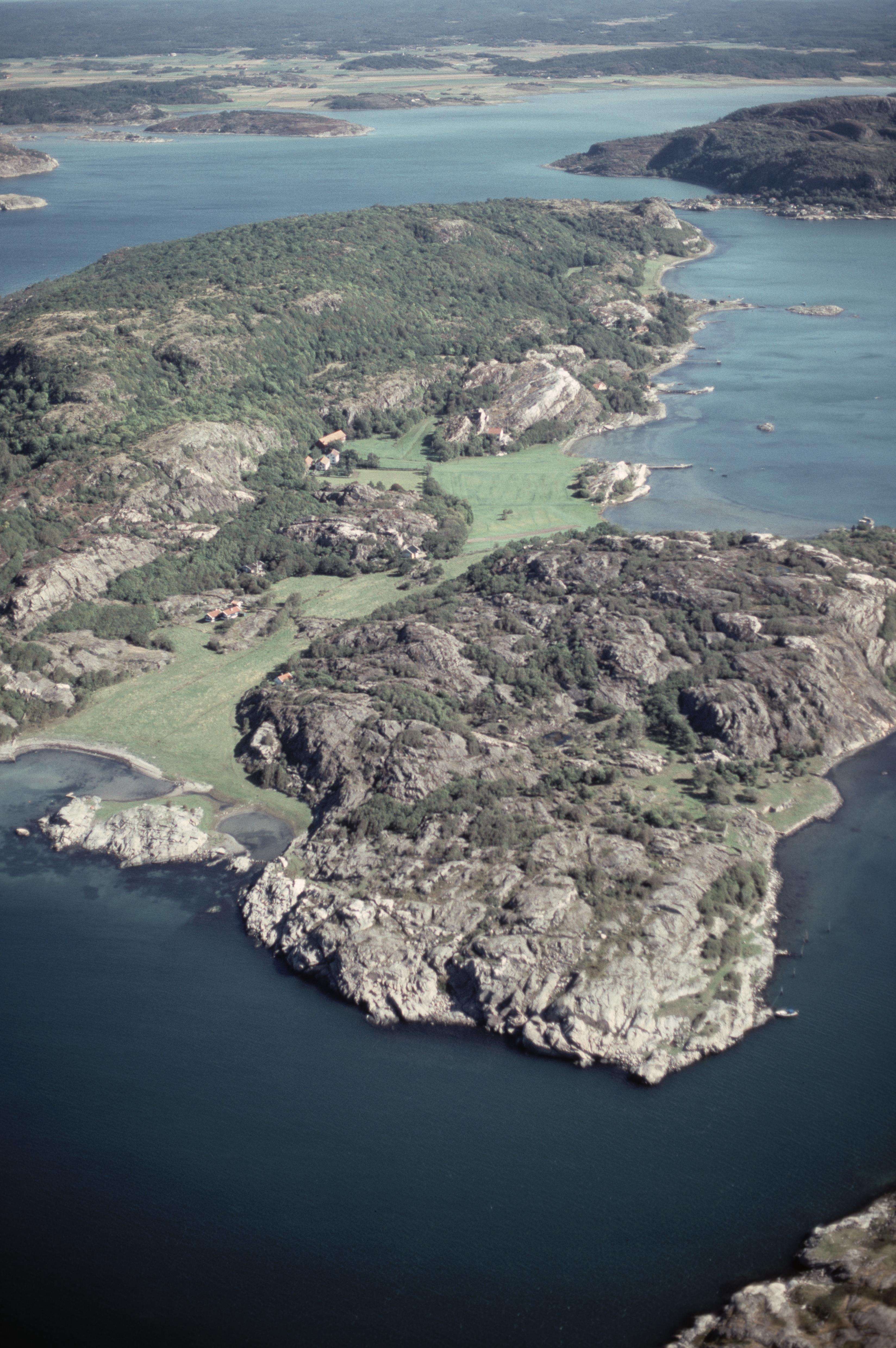 Beskrivning: Södra sidan av ön vid Lammholmen. Till höger om bildens mitt lämningar efter öns sillsalteri / trankokeri RAÄnr Lycke 72:1. Bilden är tagen mot (väderstreck): NO