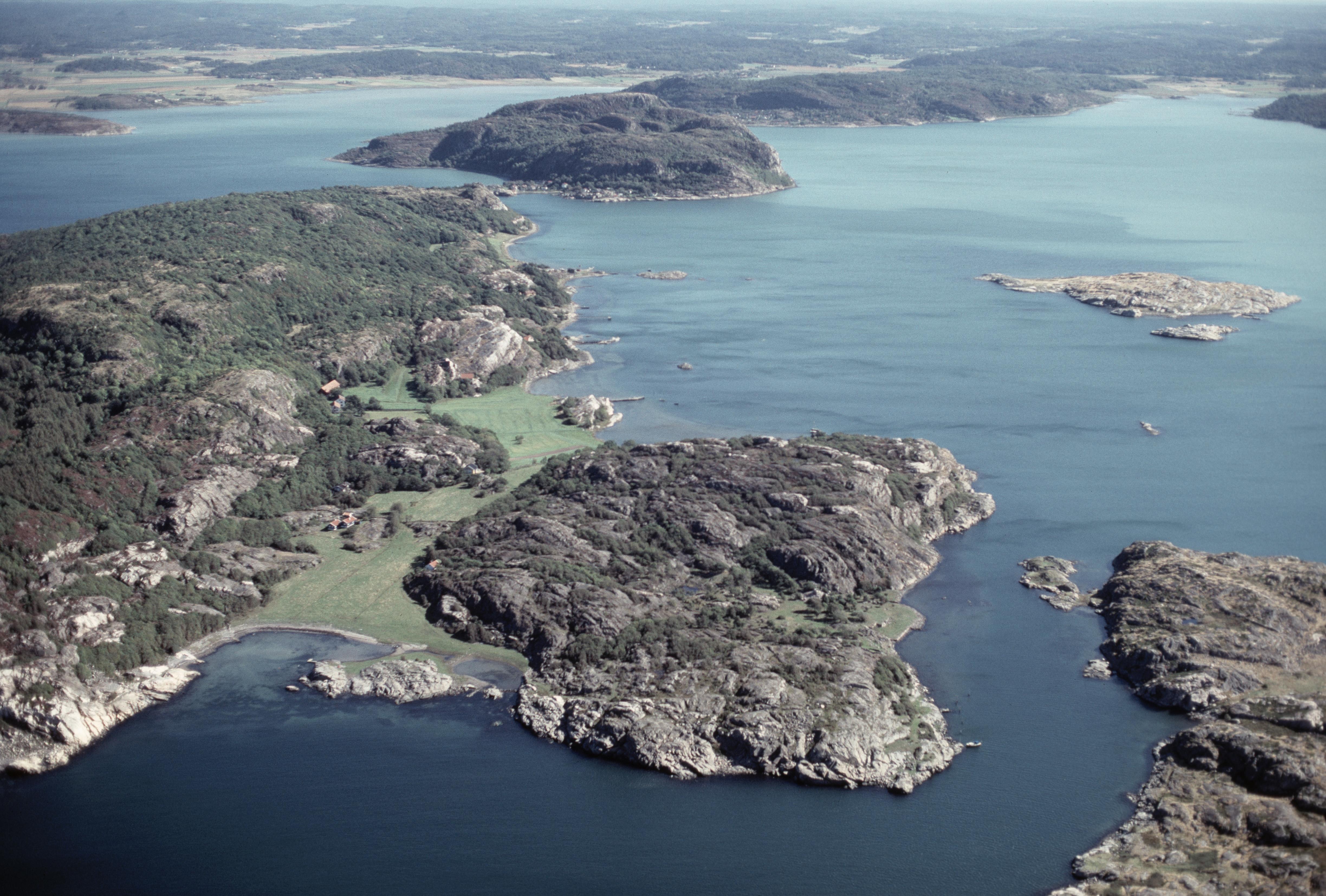 Beskrivning: Södra sidan av ön vid Lammholmen. Till höger om bildens mitt lämningar efter öns sillsalteri / trankokeri RAÄnr Lycke 72:1. Bilden är tagen mot (väderstreck): Ö