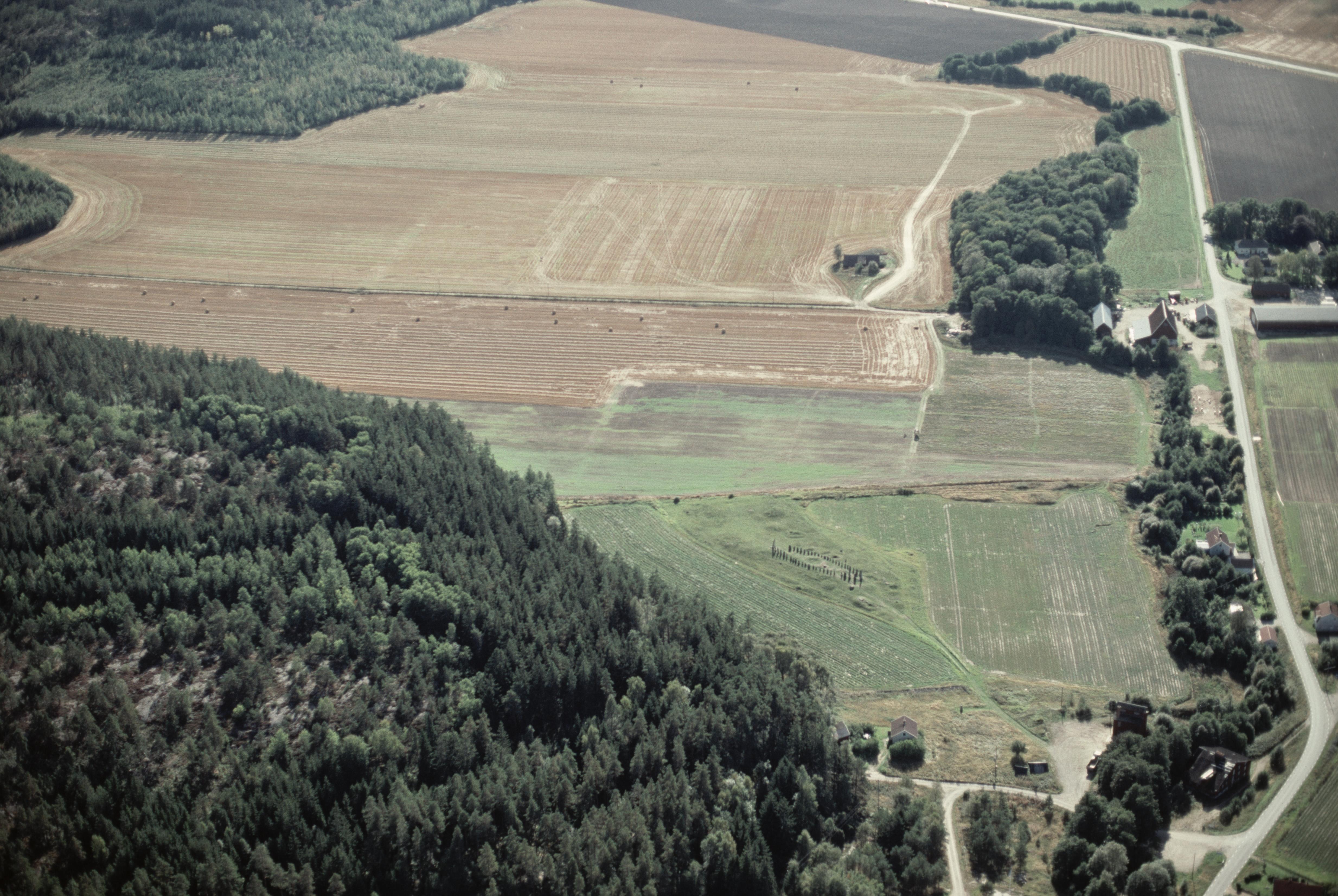 Beskrivning: Blomsholms by och herrgård. Gravfält med skeppssättning RAÄnr Skee 343:1 och hällristning Skee 1563:1 till höger under bildens mitt. Bilden är tagen mot (väderstreck): SV