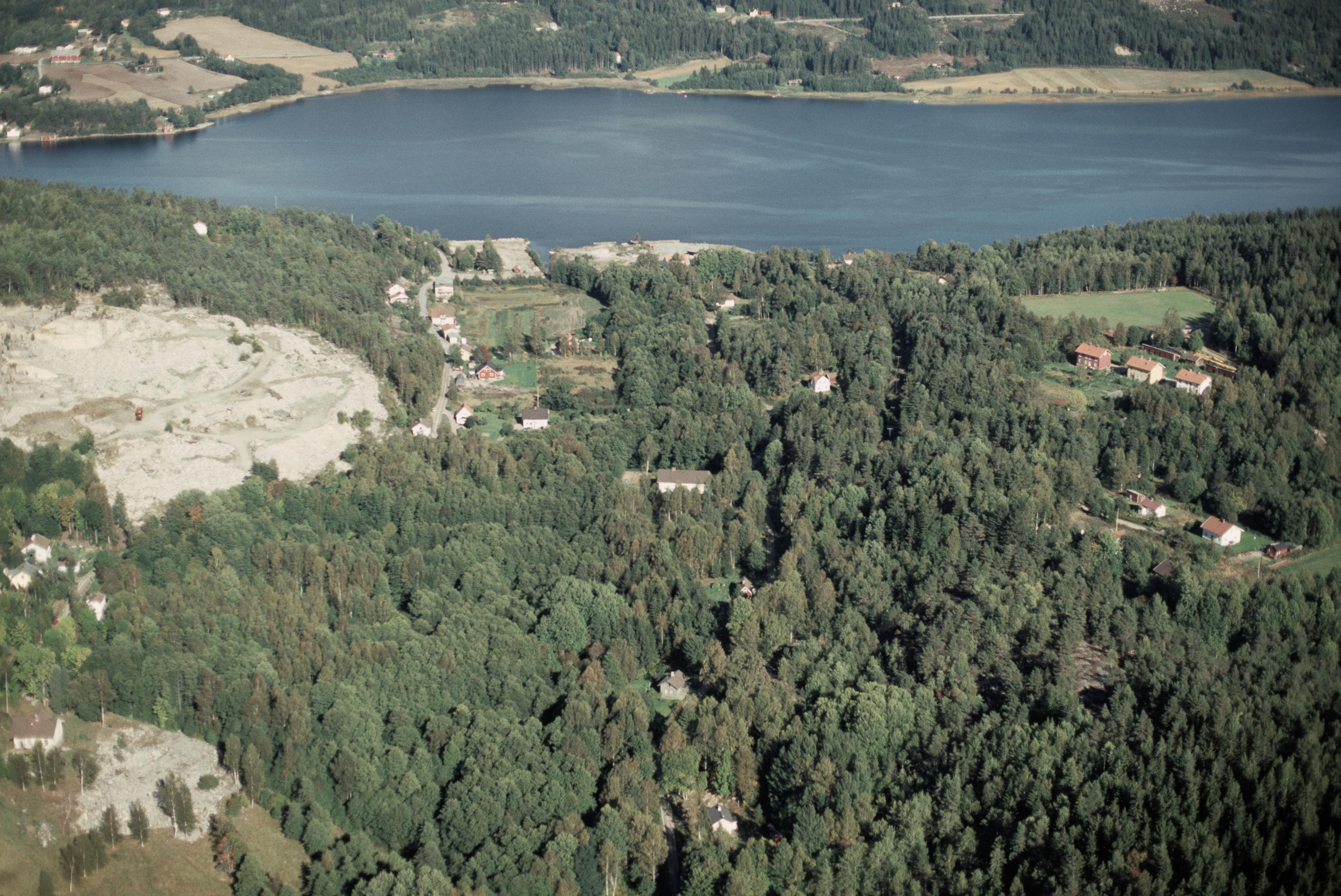 Beskrivning: Krokstrands stenhuggarsamhälle vid Idefjorden. Hög RAÄnr Skee 412:1-3 och hällristning Skee 650:1 vid bildens mitt. Bilden är tagen mot (väderstreck): ONO