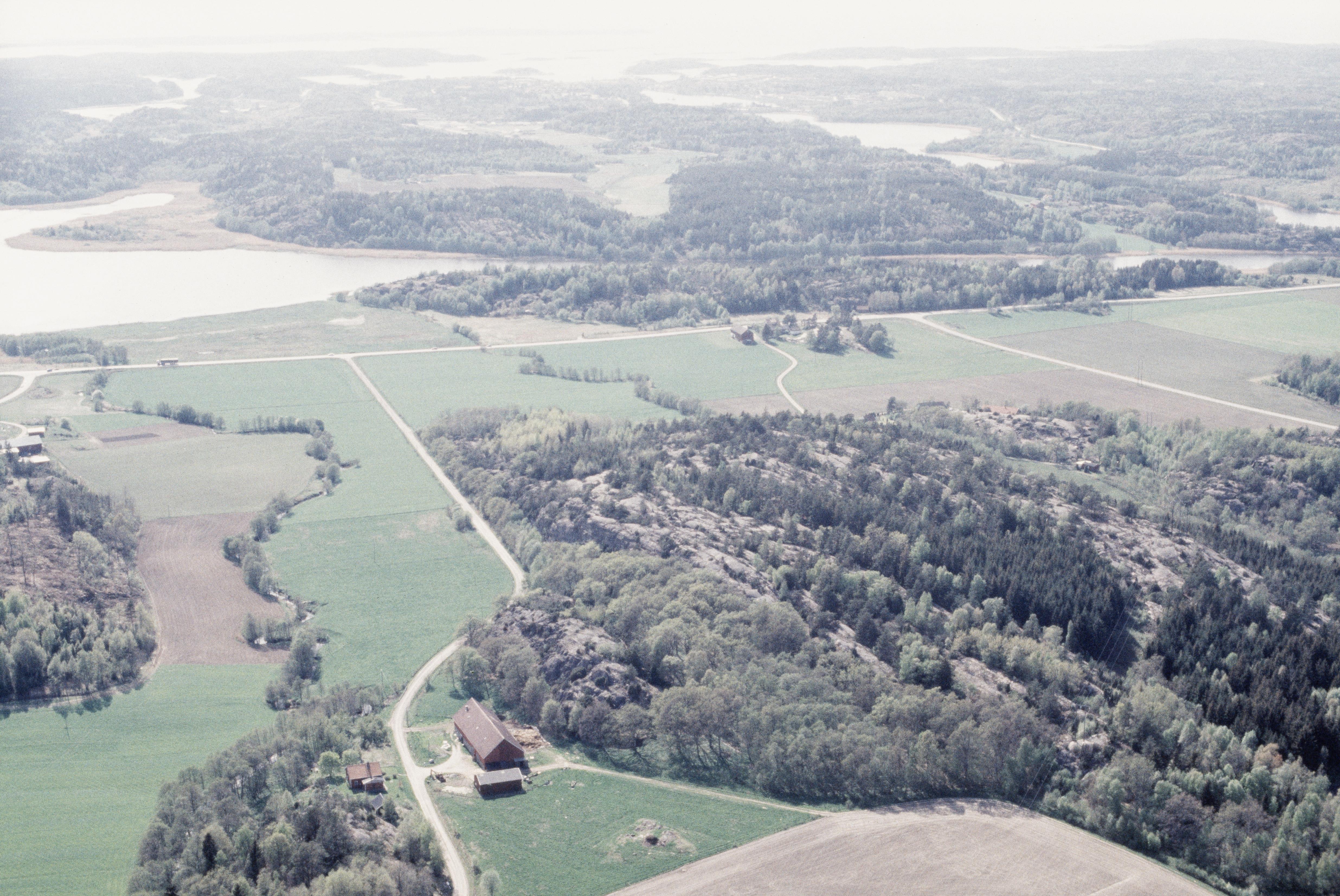 Beskrivning: Rogstad mot Strömsvattnet och Strömstad (i bildens övre del). Vid bildens mitt högen RAÄnr Skee 128:1. Bilden är tagen mot (väderstreck): SV