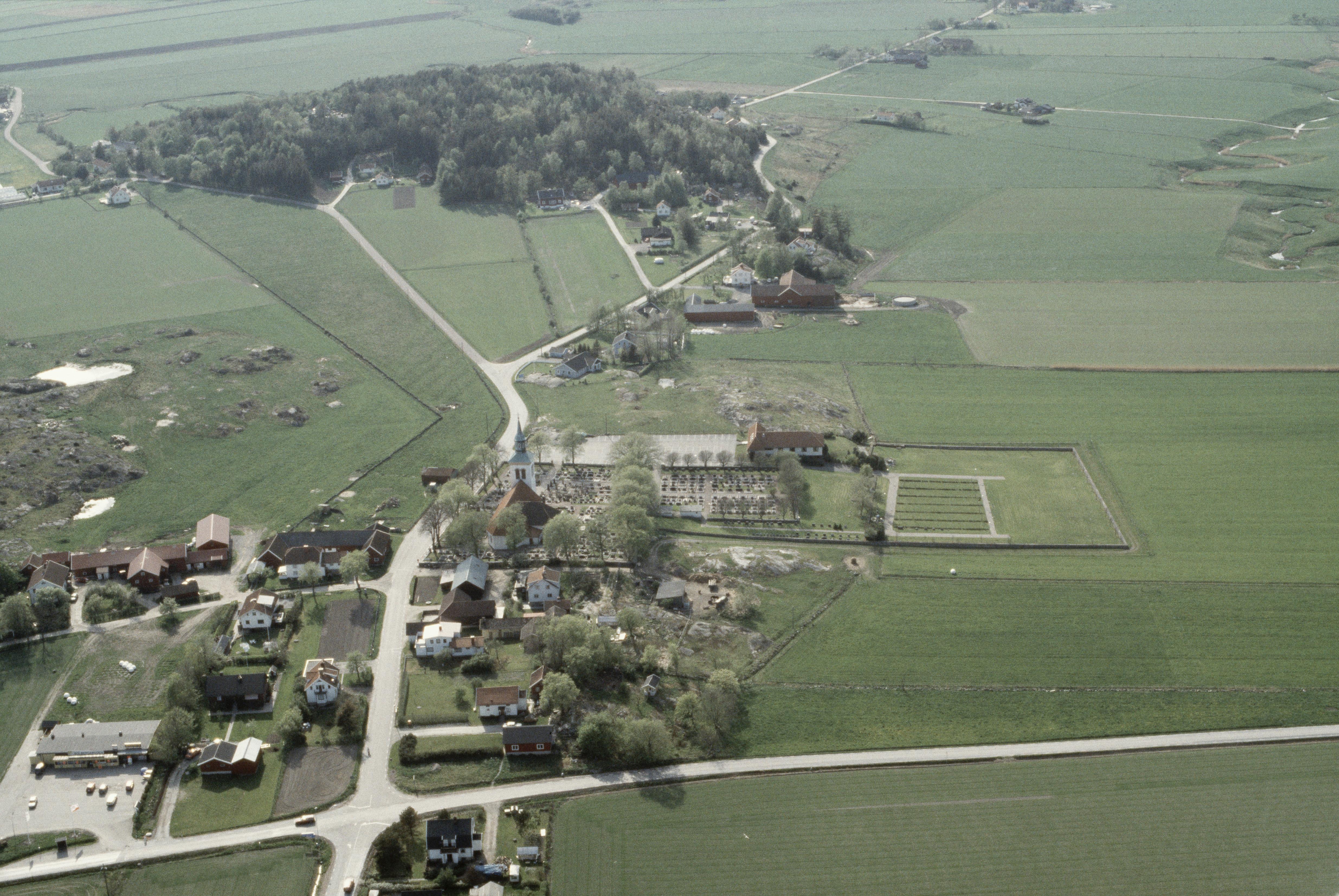 Beskrivning: Solberga kyrka och kyrkby i Vallbyåns dalgång. Bilden är tagen mot (väderstreck): V