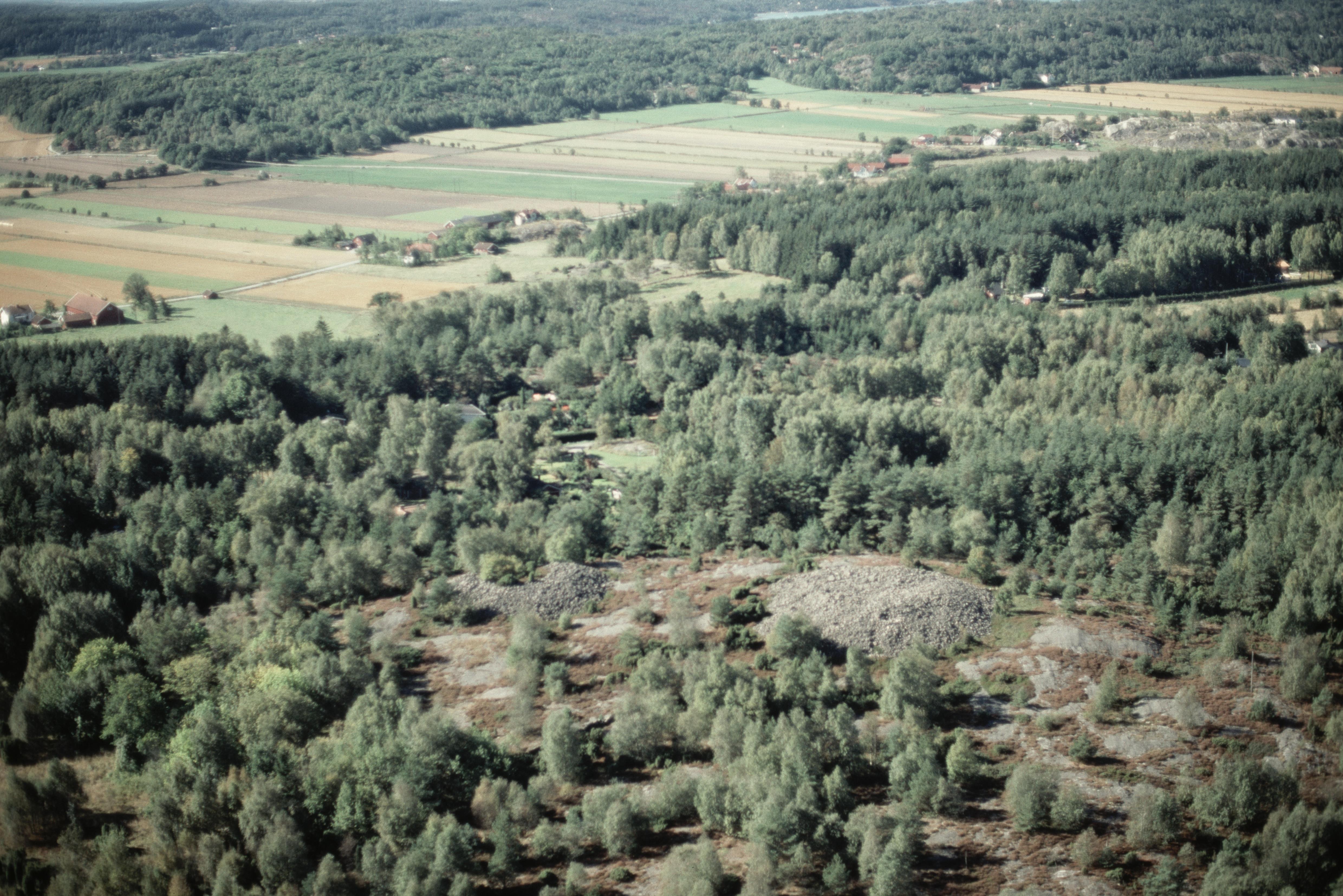 Beskrivning: Åseby storrösen RAÄnr Solberga 134:1 på Åsebyberg i bildens nedre del. I bildens övre del Ödsmål och Ödsmåls mosse. Bilden är tagen mot (väderstreck): SV