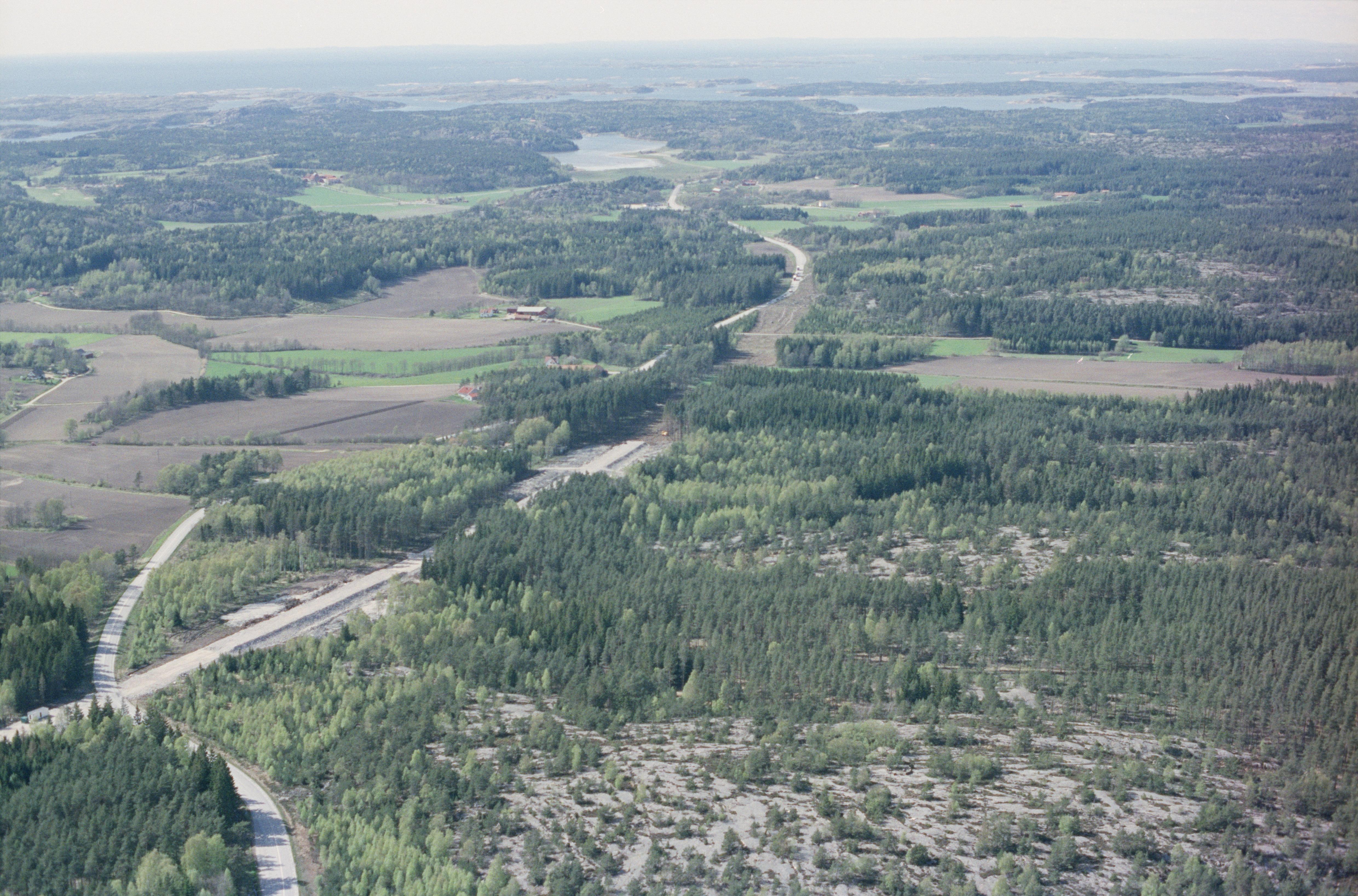 Beskrivning: I bildens mitt Källbacken, Kvarnbacken och Håkebytorp. Gravfält RAÄnr Tanum 538:1, 539:1 m.m. Arkeologiska undersökningar i samband med vägbygge av nya väg E6. Bilden är tagen mot (väderstreck): NV