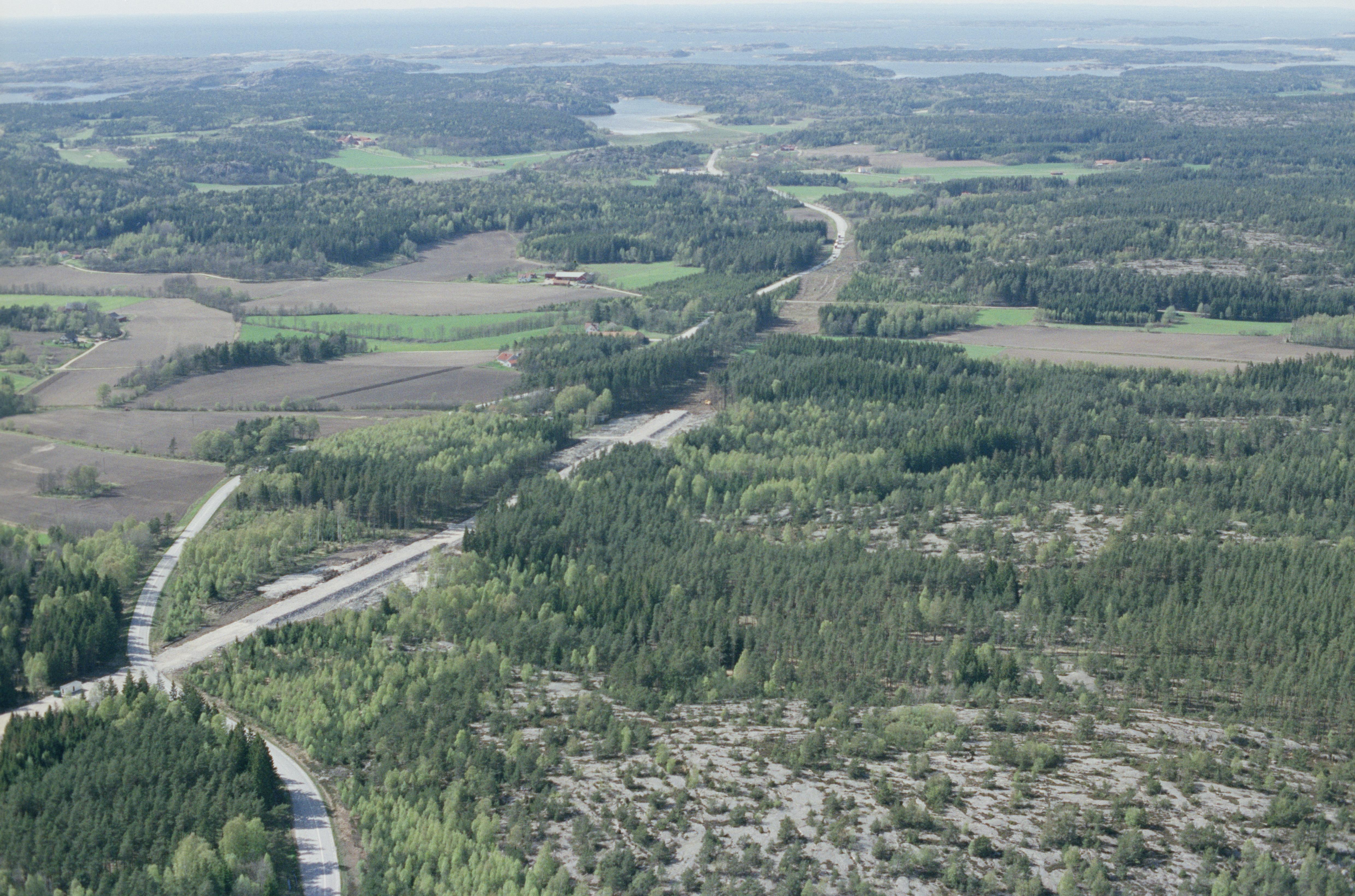 Beskrivning: I bildens mitt Källbacken, Kvarnbacken och Håkebytorp. Gravfält RAÄnr Tanum 538:1, 539:1 m.m. Arkeologiska undersökningar i samband med vägbygge av nya väg E6. Bilden är tagen mot (väderstreck): NV