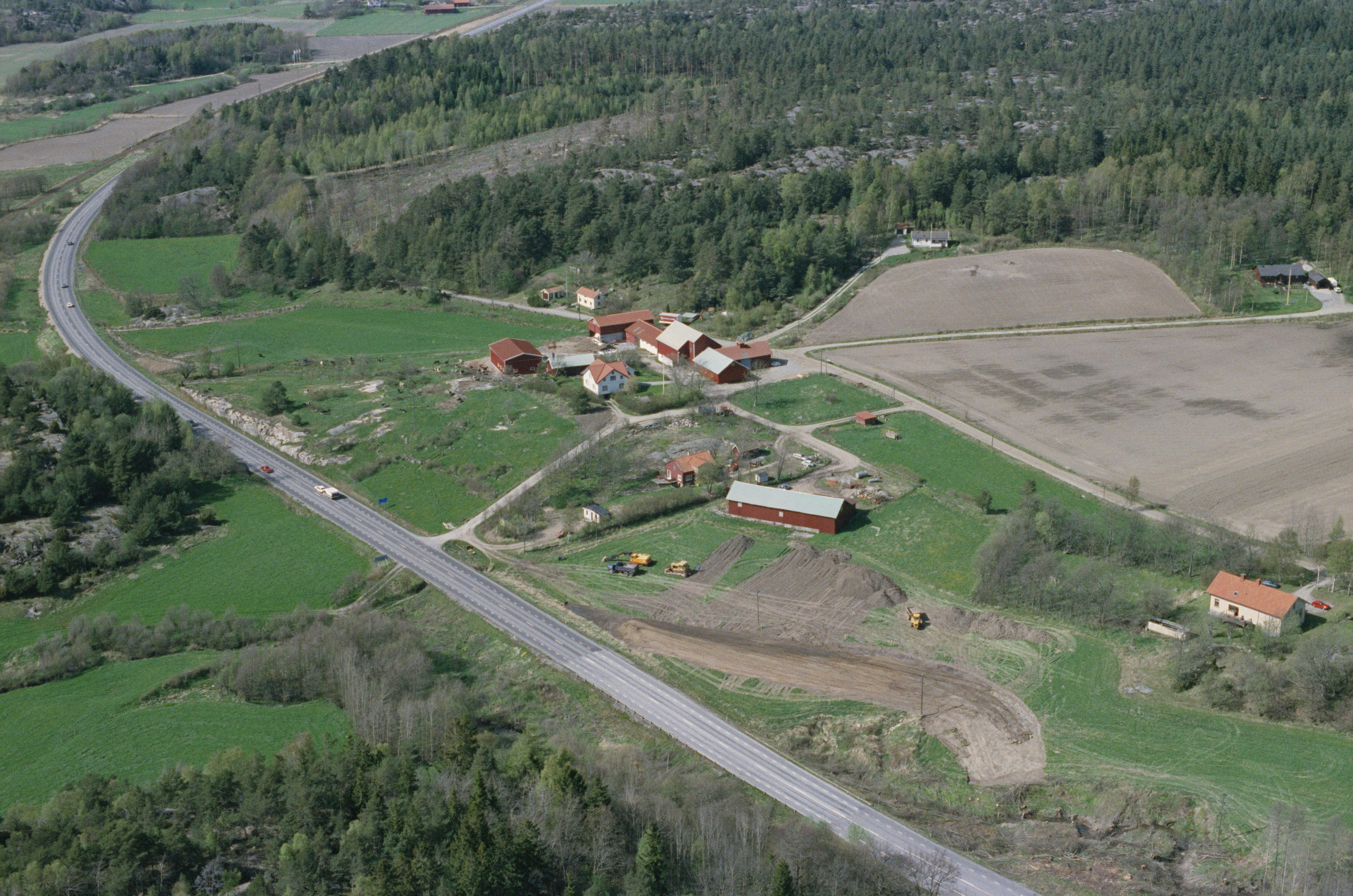 Beskrivning: Vid bildens mitt arkeologisk undersökning vid Larsgården. Boplats RAÄnr Tanum 1601:1 och hällristningar Tanum 469:1-2 m.fl. Uppe till vänster området vid Tannamskilen. Bilden är tagen mot (väderstreck): NNV