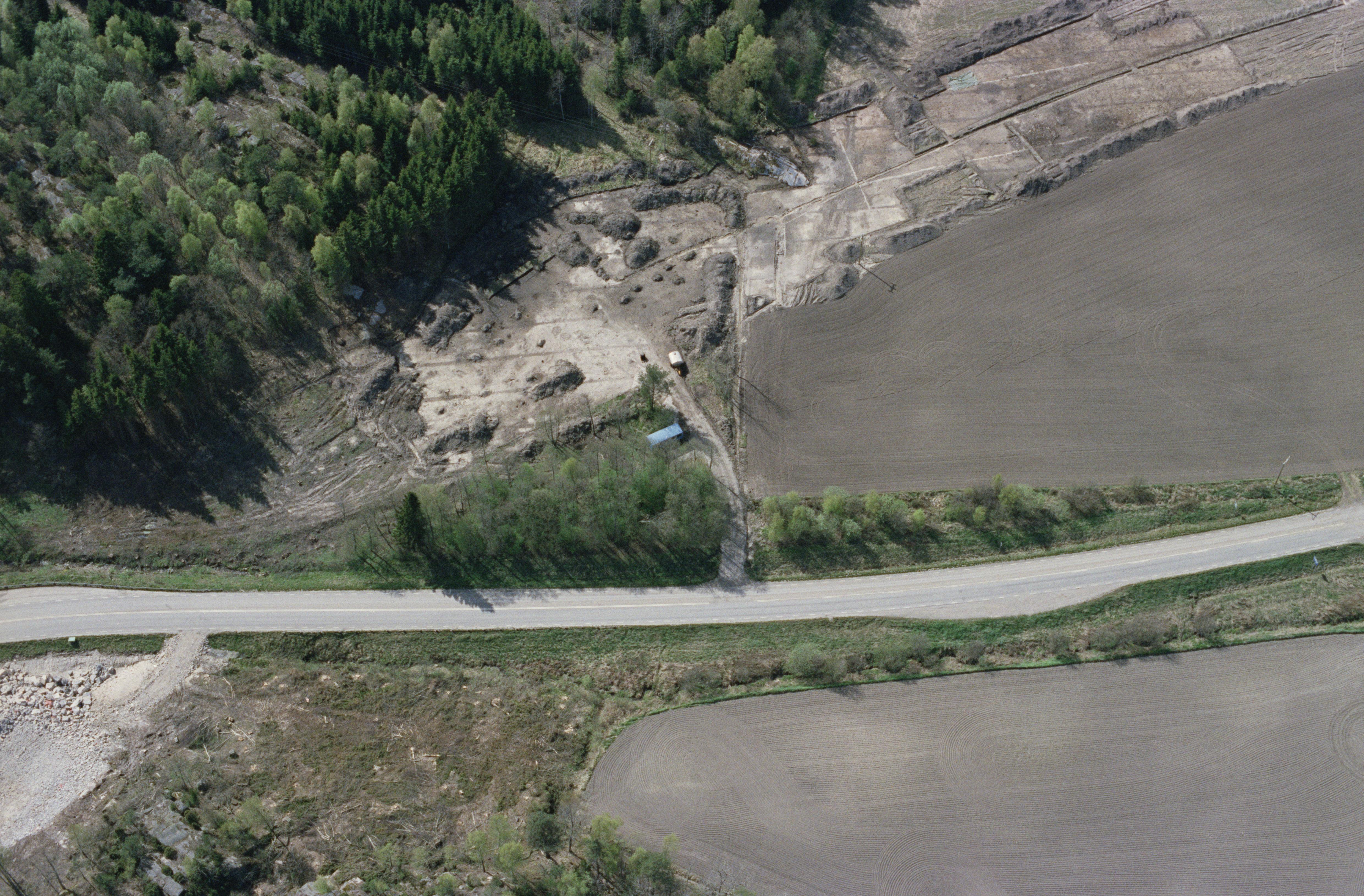 Beskrivning: Beskrivning: Kvarnbacken mellan Präste-Säm och Källbacken. Boplats och gravfält RAÄnr Tanum 539:1 m.m. Arkeologiska undersökningar i samband med vägbygge av nya väg E6. Bilden är tagen mot (väderstreck): SV Fotosyfte: Flygbildsdokumentation