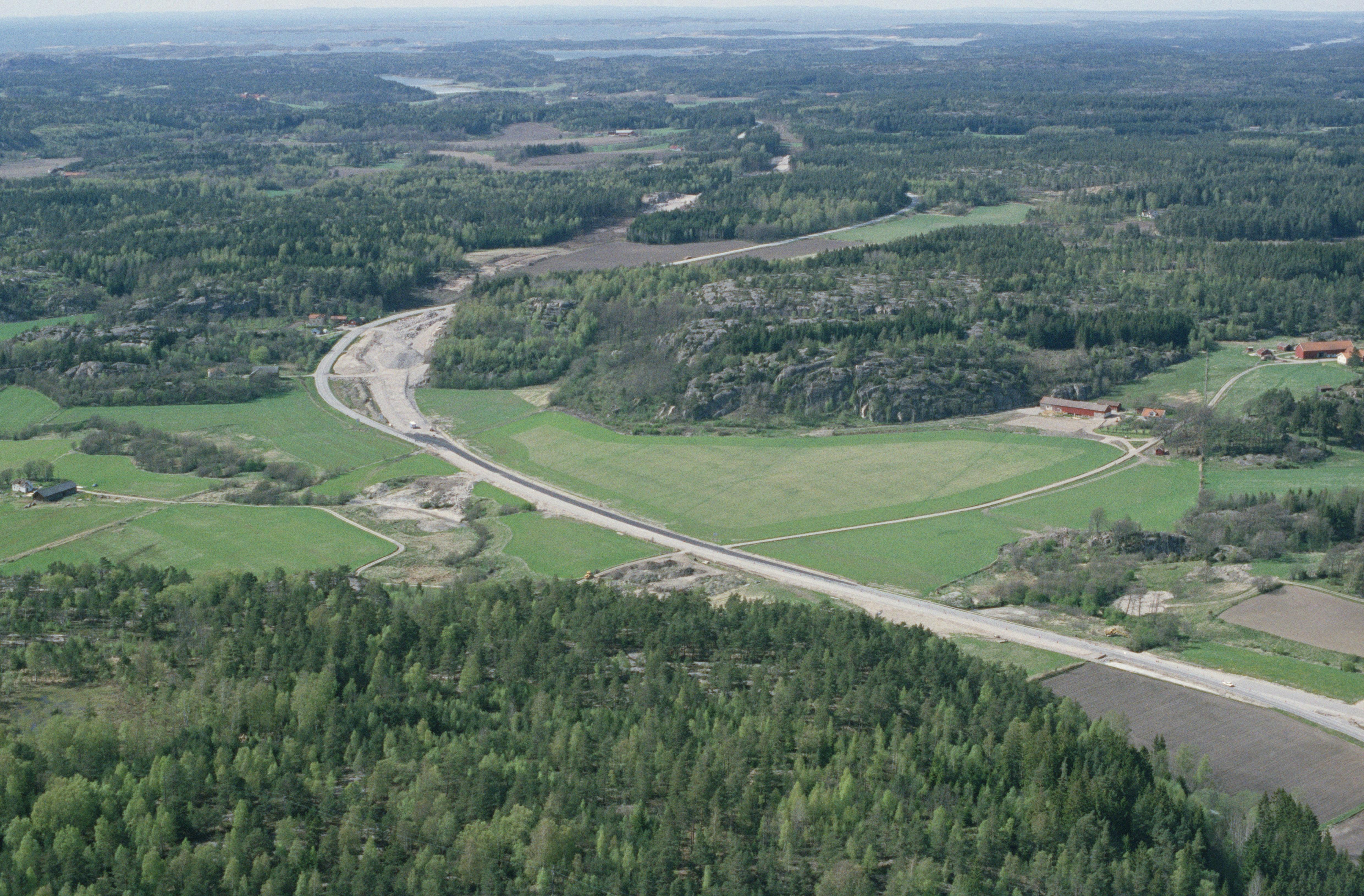 Beskrivning: Område med arkeologiska undersökningar i samband med vägbygge (väg E6). Rörängen och boplats RAÄnr Tanum 1831:1 under bildens mitt. I bildens övre del Präste-Säm. Bilden är tagen mot (väderstreck): NV