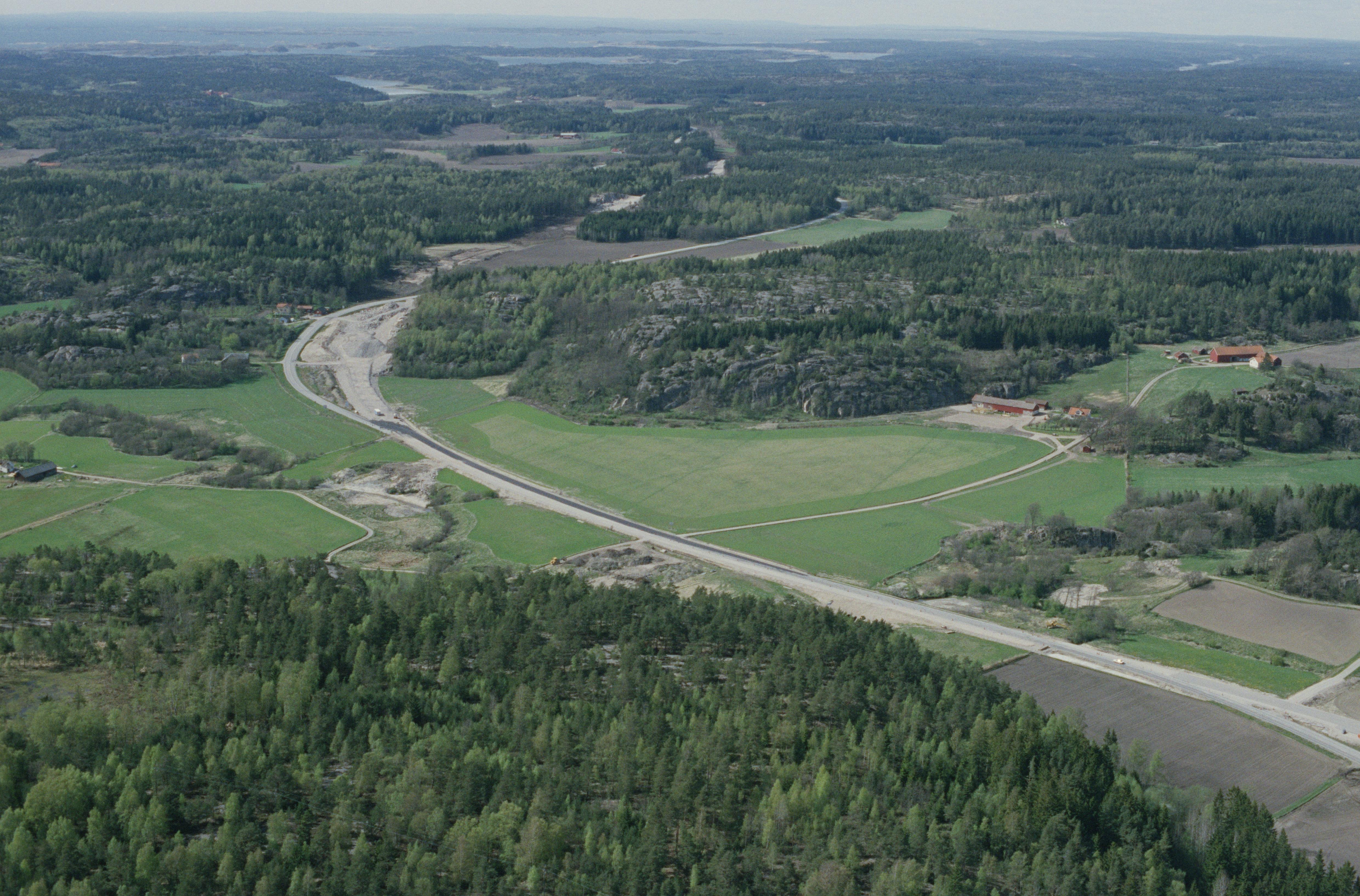 Beskrivning: Område med arkeologiska undersökningar i samband med vägbygge (väg E6). Rörängen och boplats RAÄnr Tanum 1831:1 under bildens mitt. I bildens övre del Präste-Säm. Bilden är tagen mot (väderstreck): NV