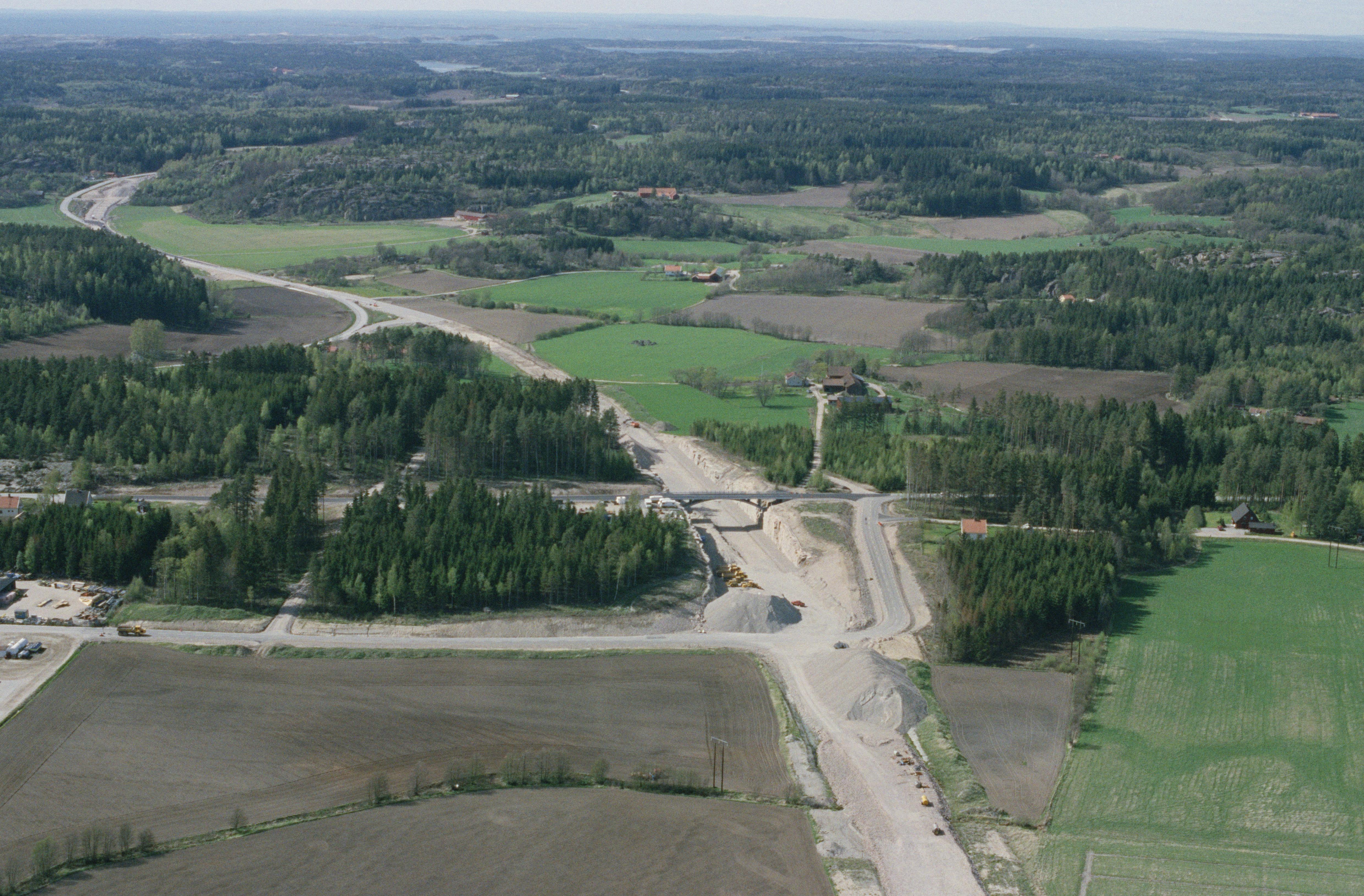 Beskrivning: Område med arkeologiska undersökningar i samband med vägbygge (väg E6). Hogar i östra delen av Tanumshede tätort. Gravfält RAÄnr Tanum 1209:1 vid bildens mitt. Bilden är tagen mot (väderstreck): NV