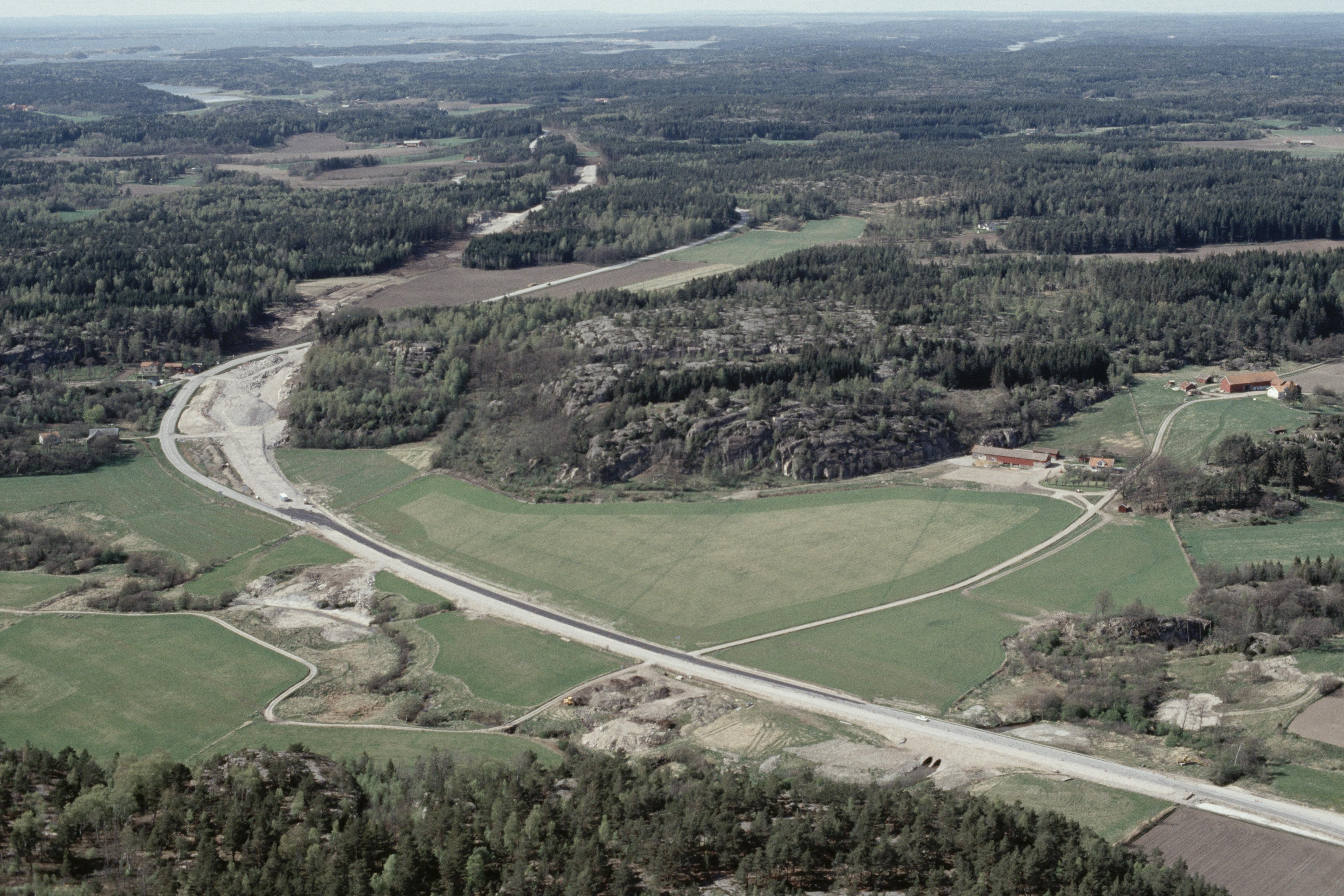Beskrivning: Område med arkeologiska undersökningar i samband med vägbygge (väg E6). Rörängen och boplats RAÄnr Tanum 1831:1 under bildens mitt. I bildens övre del Präste-Säm. Bilden är tagen mot (väderstreck): NV