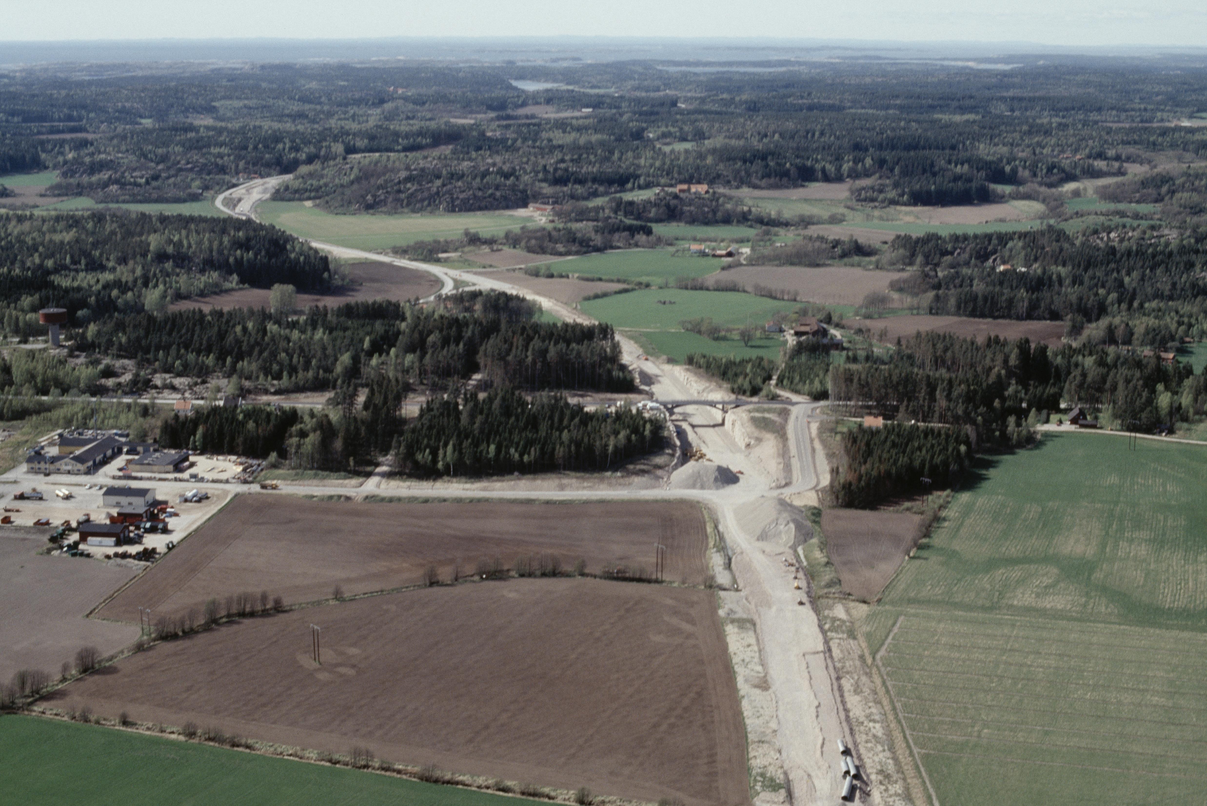 Beskrivning: Område med arkeologiska undersökningar i samband med vägbygge (väg E6). Hogar i östra delen av Tanumshede tätort. Gravfält RAÄnr Tanum 1209:1 vid bildens mitt. Bilden är tagen mot (väderstreck): NV