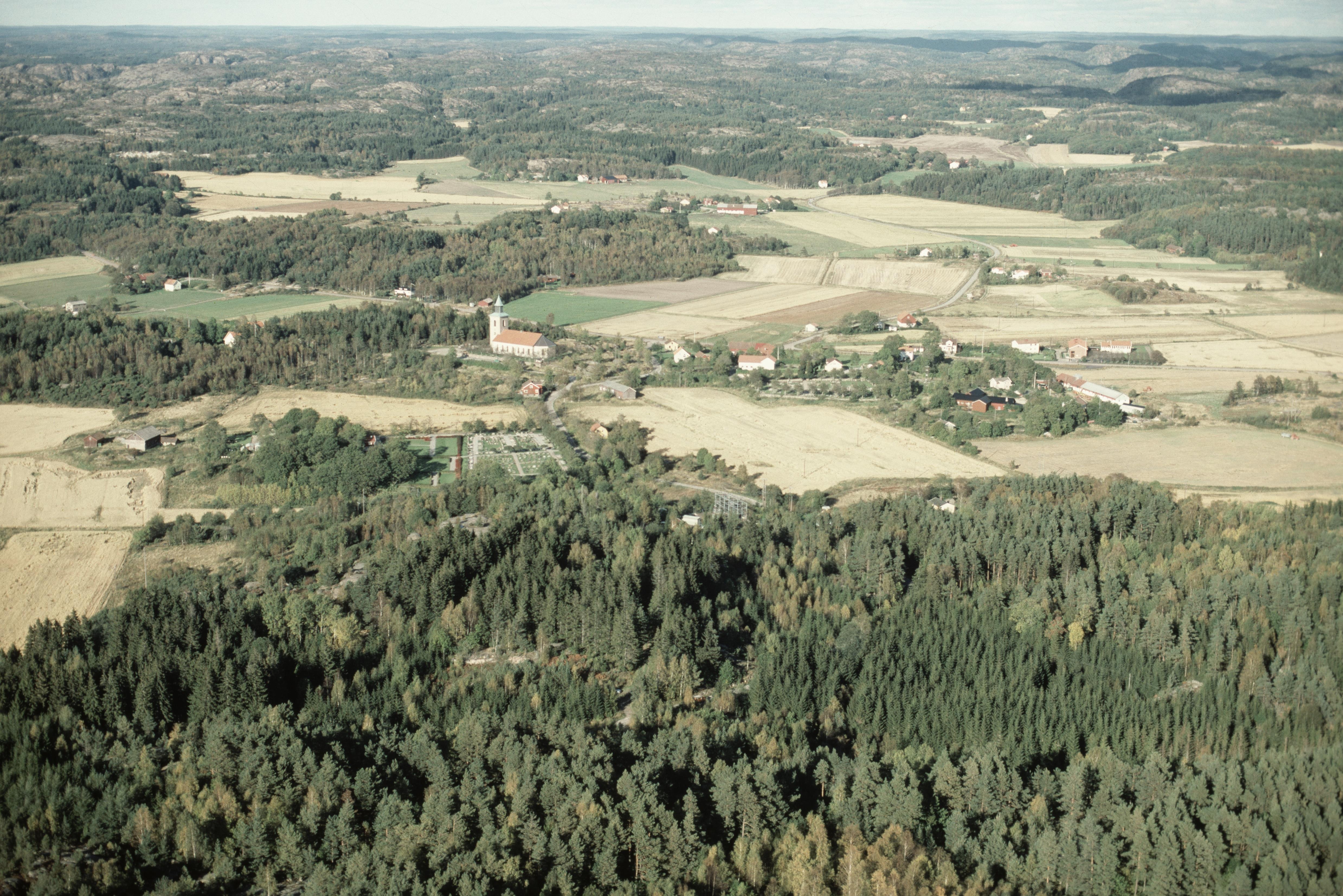 Beskrivning: Anmärkning (övrig): Riksintresse-nr/namn: O37 - Tossene. Socken: Tossene. Motivering: Fornlämningsmiljö från främst bronsåldern som utmärks av sin koncentration av anläggningar på en begränsad yta. - Uttryck för riksintresset: Främst en stor mängd skålgropsförekomster och figurristningar (bl a många skepp); dessutom 4 gravfält, rösen, stensättningar och boplatser. [Texten uppdaterat av Riksantikvarieämbetet våren 2013.] Beskrivning: Tossene kyrka och kyrkby. Bilden är tagen mot (väderstreck): NNO Fotosyfte: Flygbildsdokumentation