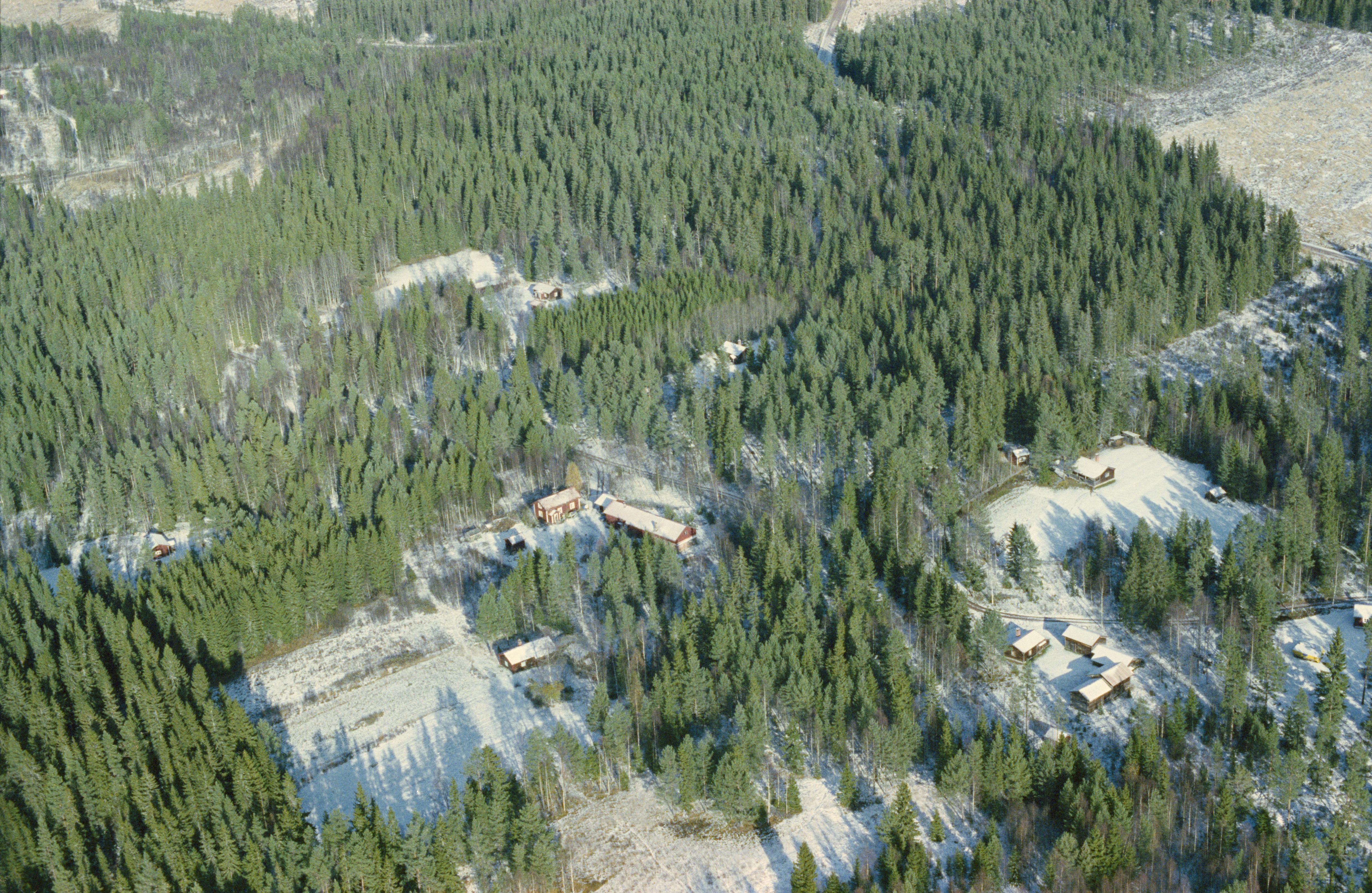 Beskrivning: Björntjärnsbäckens dalgång. Dammskogs fäbodmiljö RAÄnr Leksand 682:1-4. I bildens övre kant södra delen av byn Skallskog. Bilden är tagen mot (väderstreck): NO