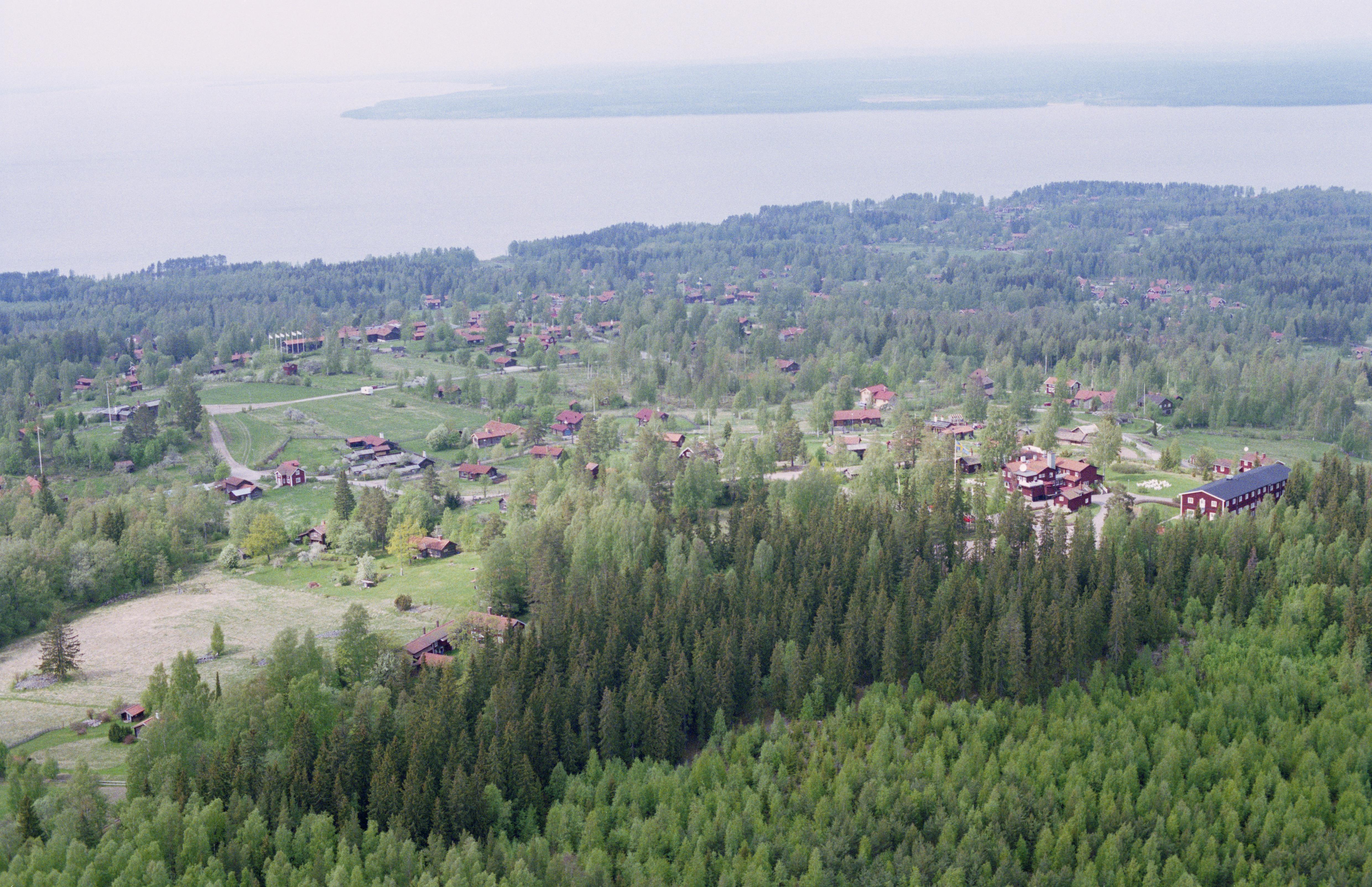 Beskrivning: Beskrivning: Tällbergs tätort. Till höger Långbersgården. I bildens övre del sjön Siljan. Bilden är tagen mot (väderstreck): NV Fotosyfte: Flygbildsdokumentation