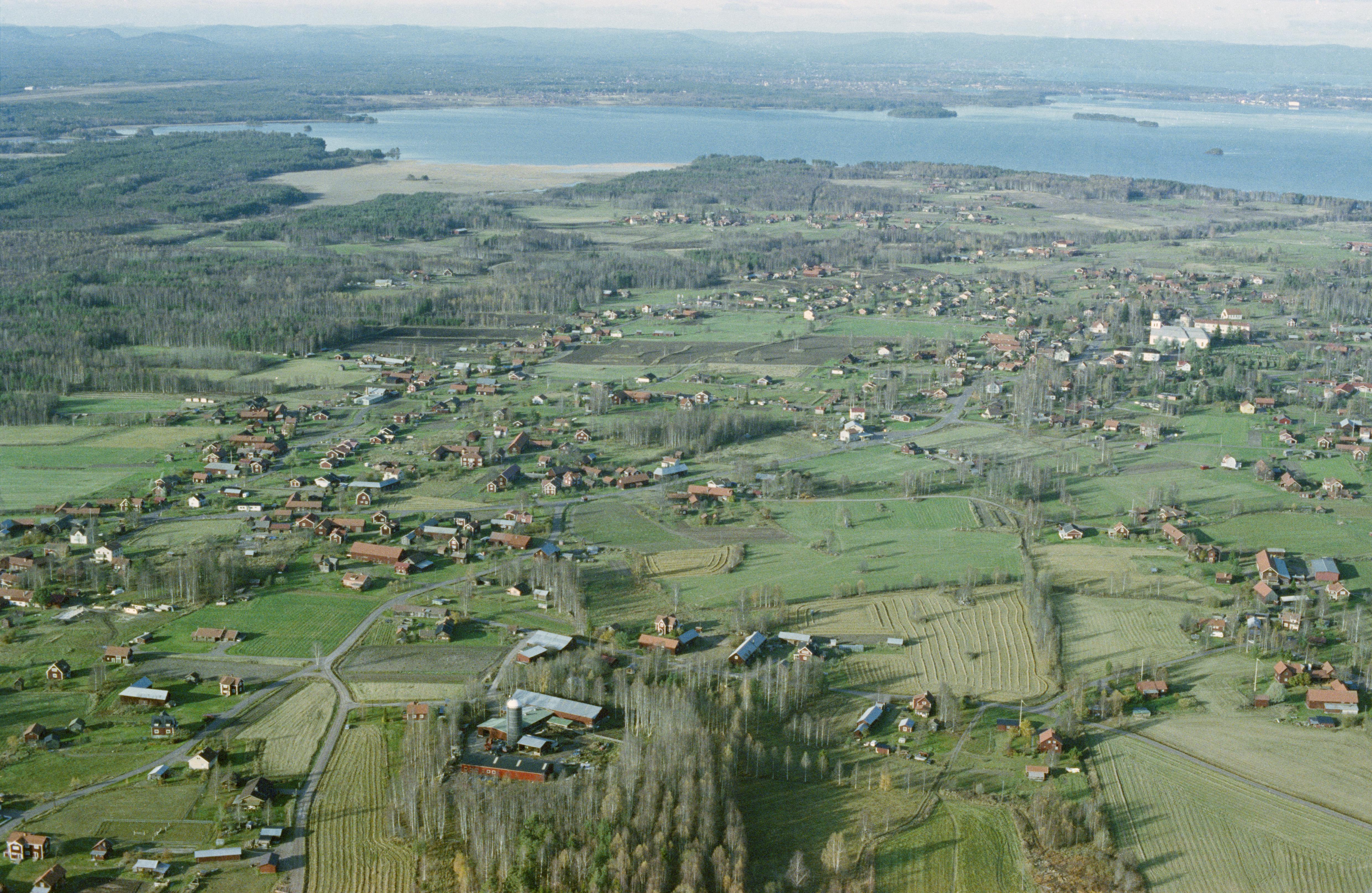 Beskrivning: Sollerö tätort och kyrkby på ön Sollerön i sjön Siljan. Solleröns kyrka och område med blästbrukslämningar RAÄnr Sollerön 112:1 till höger över bildens mitt. Bilden är tagen mot (väderstreck): N