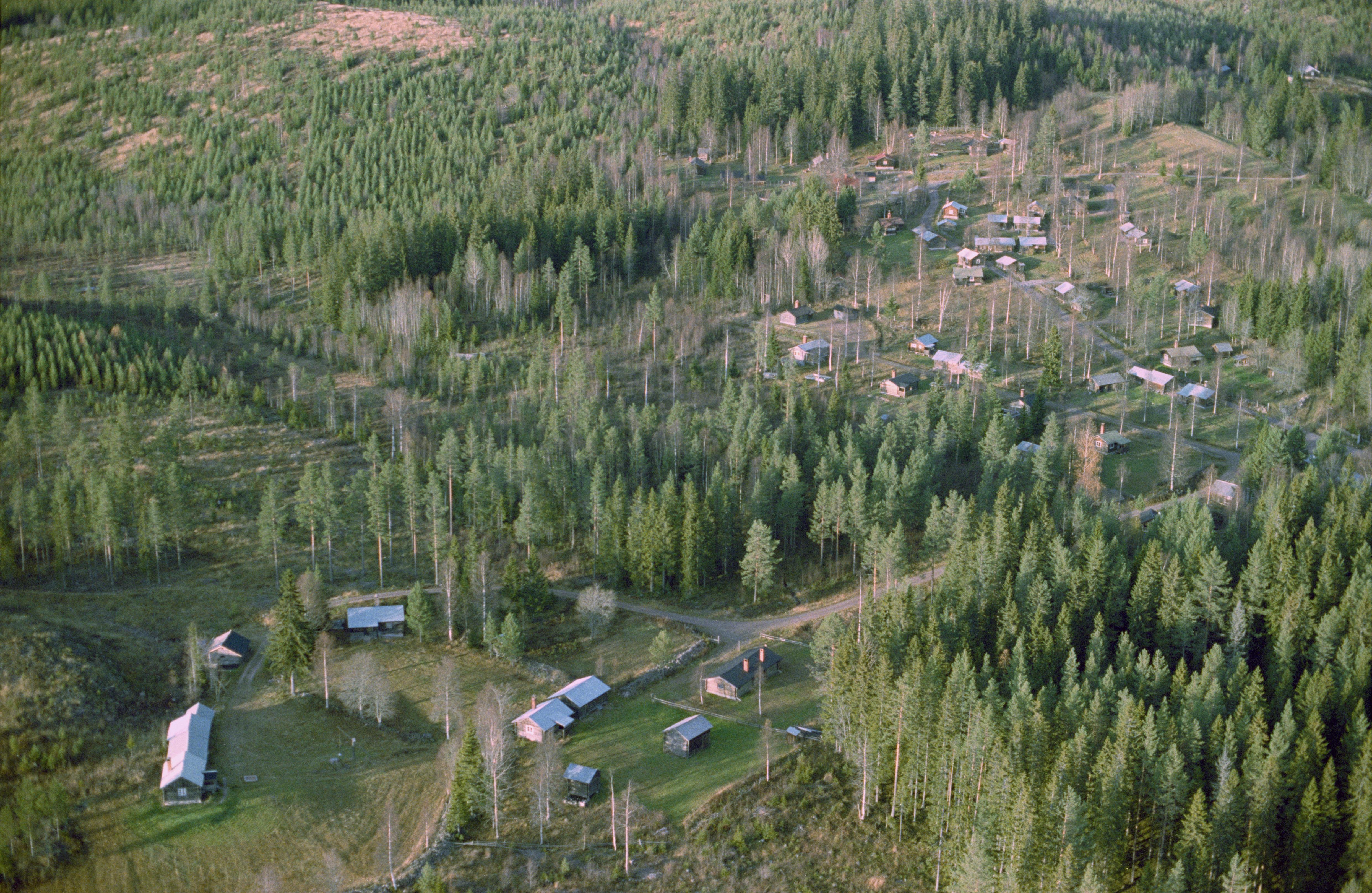Beskrivning: Fäbodsbyn Övre Bjönsaberg (skrivs även Bönsaberg). I bildens nedre del fäbodar med nummer 797, 709, 714 m.fl. i sydvästra delen av byn. Bilden är tagen mot (väderstreck): NNV