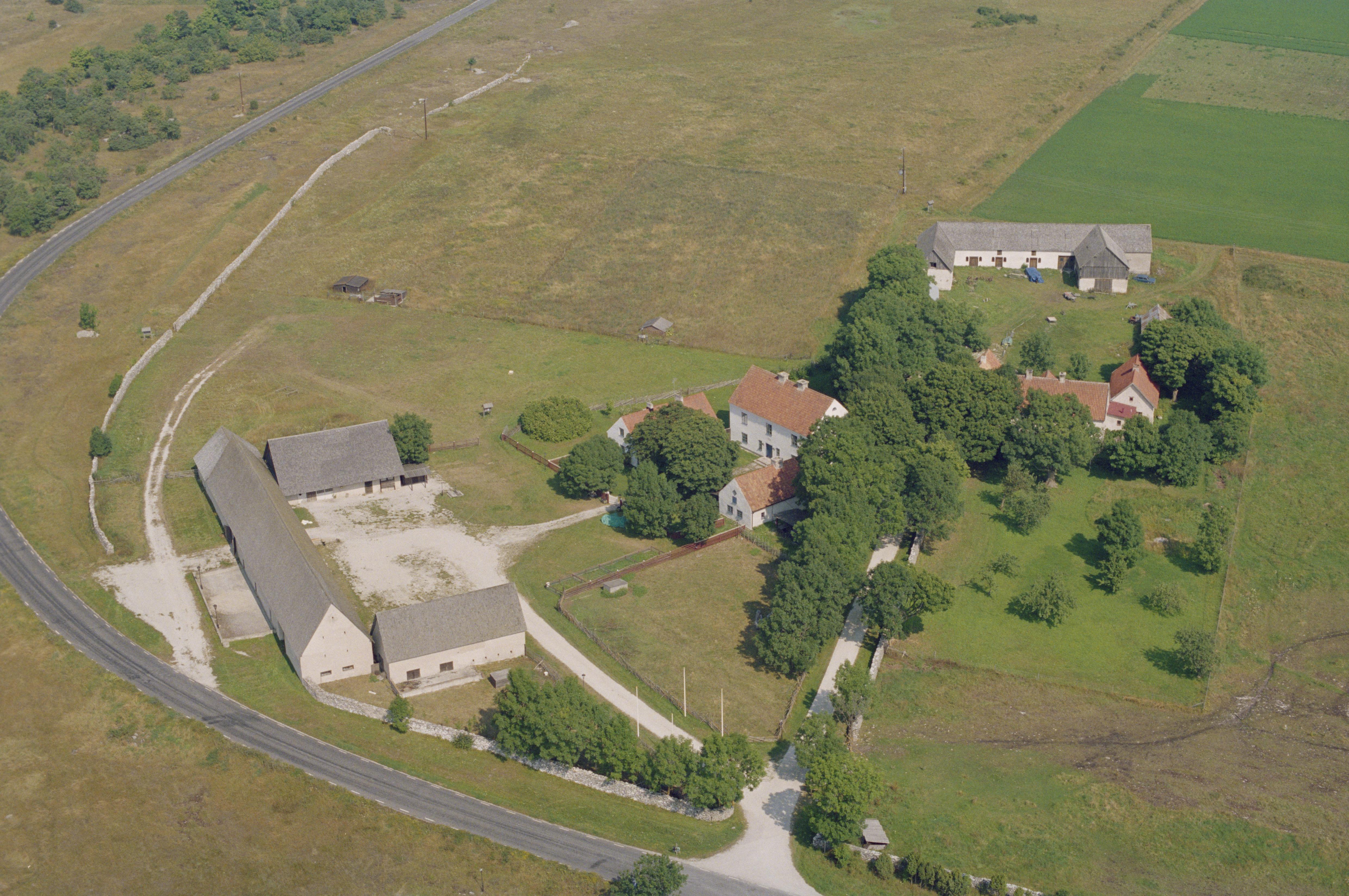 Beskrivning: Hau gård, ensamgård och byggnadsminne. Vid gården bo- och gravplats RAÄnr Fleringe 41:1, 114:1, 118, 180, hägnad Fleringe 180, kalkugn Fleringe 49:1, tjärdal Fleringe 47:3 m.m. Uppe till höger sjön Hau träsk. Bilden är tagen mot (väderstreck): NNO