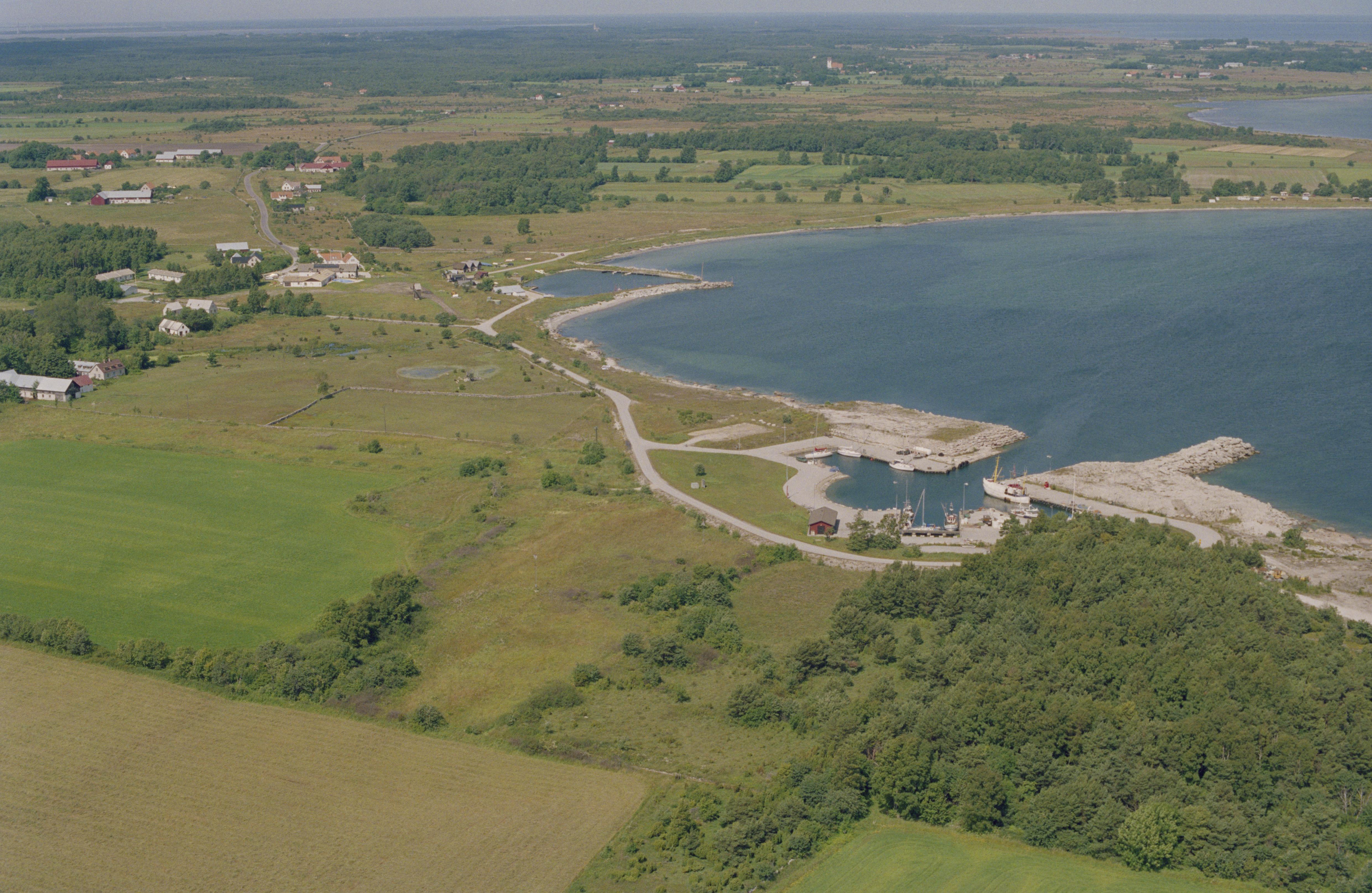 Beskrivning: Vändburgs fiskehamn och fiskeläge i Vändburgsviken. I bildens nedre del bytomt RAÄnr Hamra 73. Bilden är tagen mot (väderstreck): NNO