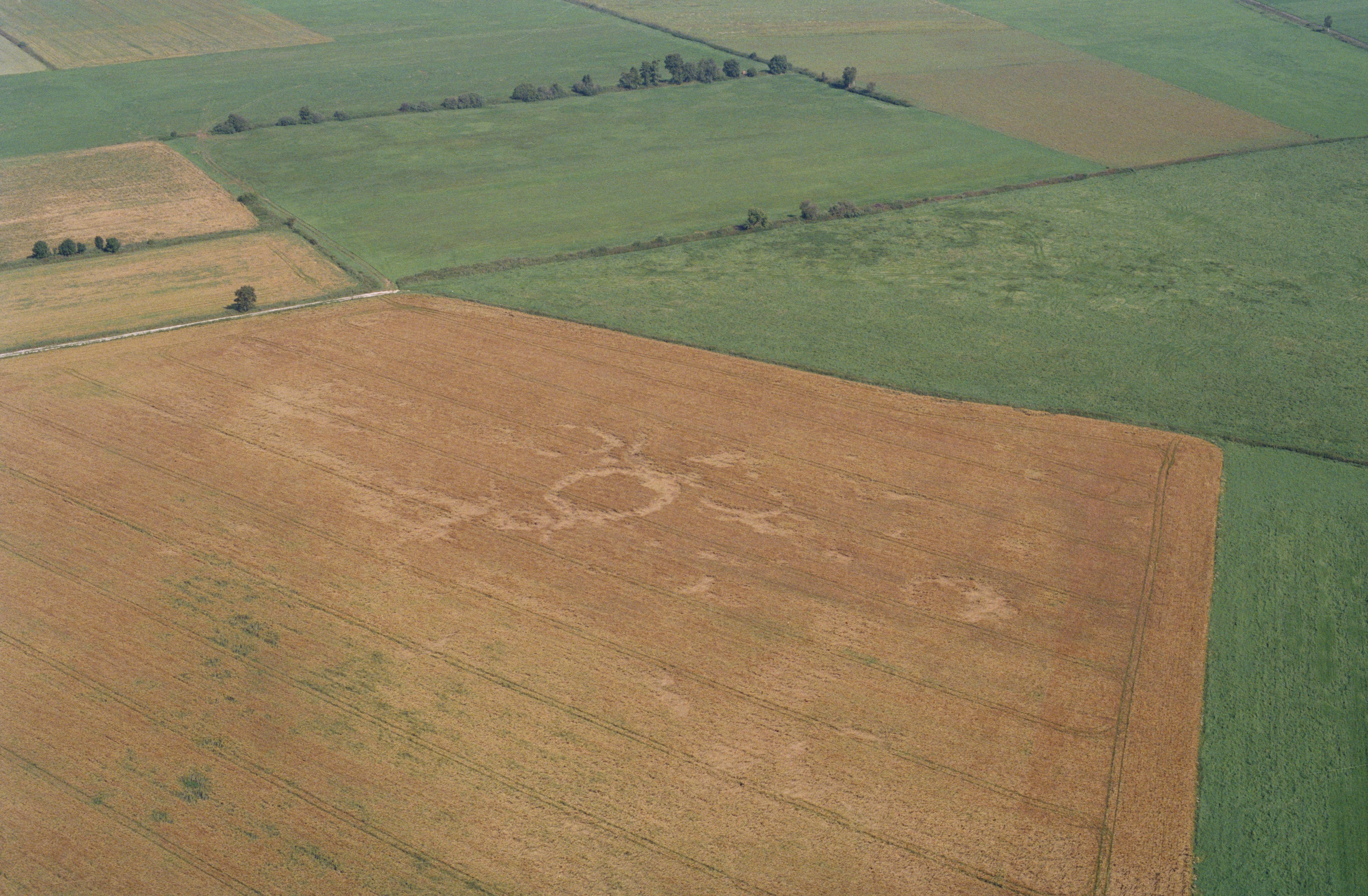 Beskrivning: Martebo myr sydväst om Martebo kyrkby, vid gränsen mot Lummelunda socken. Cropmarks i odlingsområdet Lilla Milldyen på norrsidan av Ojstersojdsträsk. Bilden är tagen mot (väderstreck): Ö