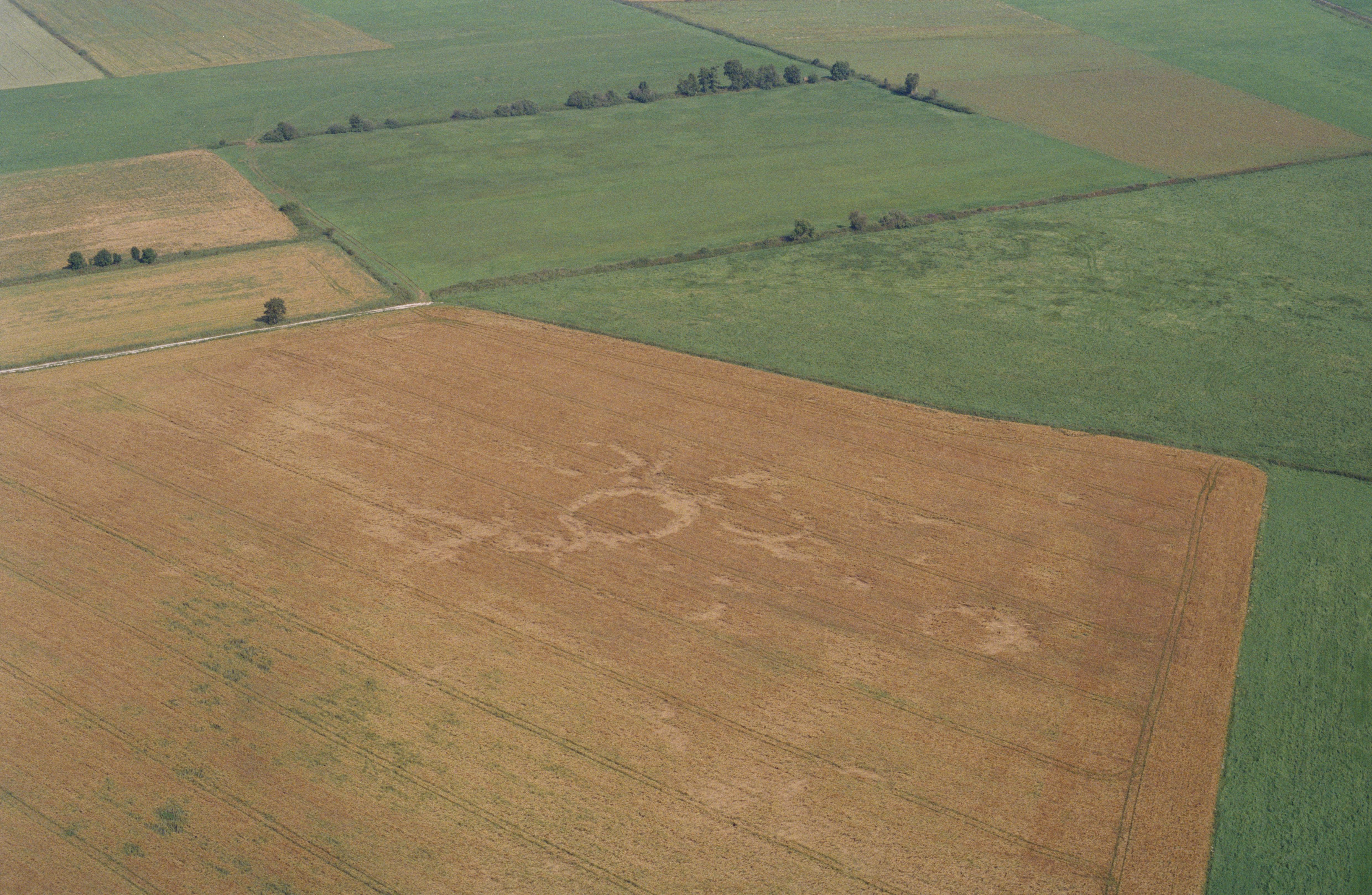 Beskrivning: Martebo myr sydväst om Martebo kyrkby, vid gränsen mot Lummelunda socken. Cropmarks i odlingsområdet Lilla Milldyen på norrsidan av Ojstersojdsträsk. Bilden är tagen mot (väderstreck): Ö