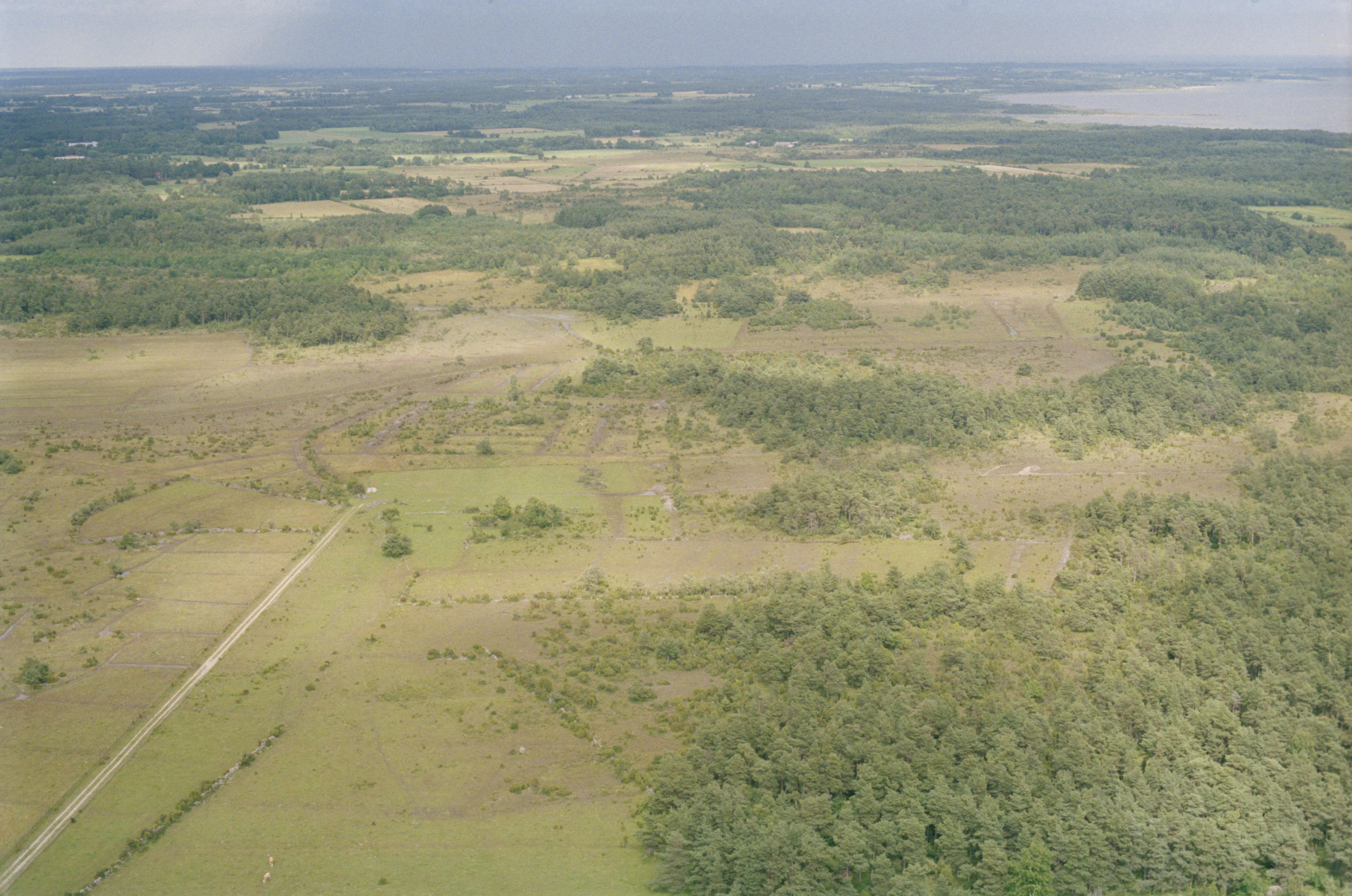 Beskrivning: Område norrost om Änggårde by. Vid bildens mitt husgrund RAÄnr Rone 102:1 vid gränsmärke Rone 154:1. Bilden är tagen mot (väderstreck): NNO