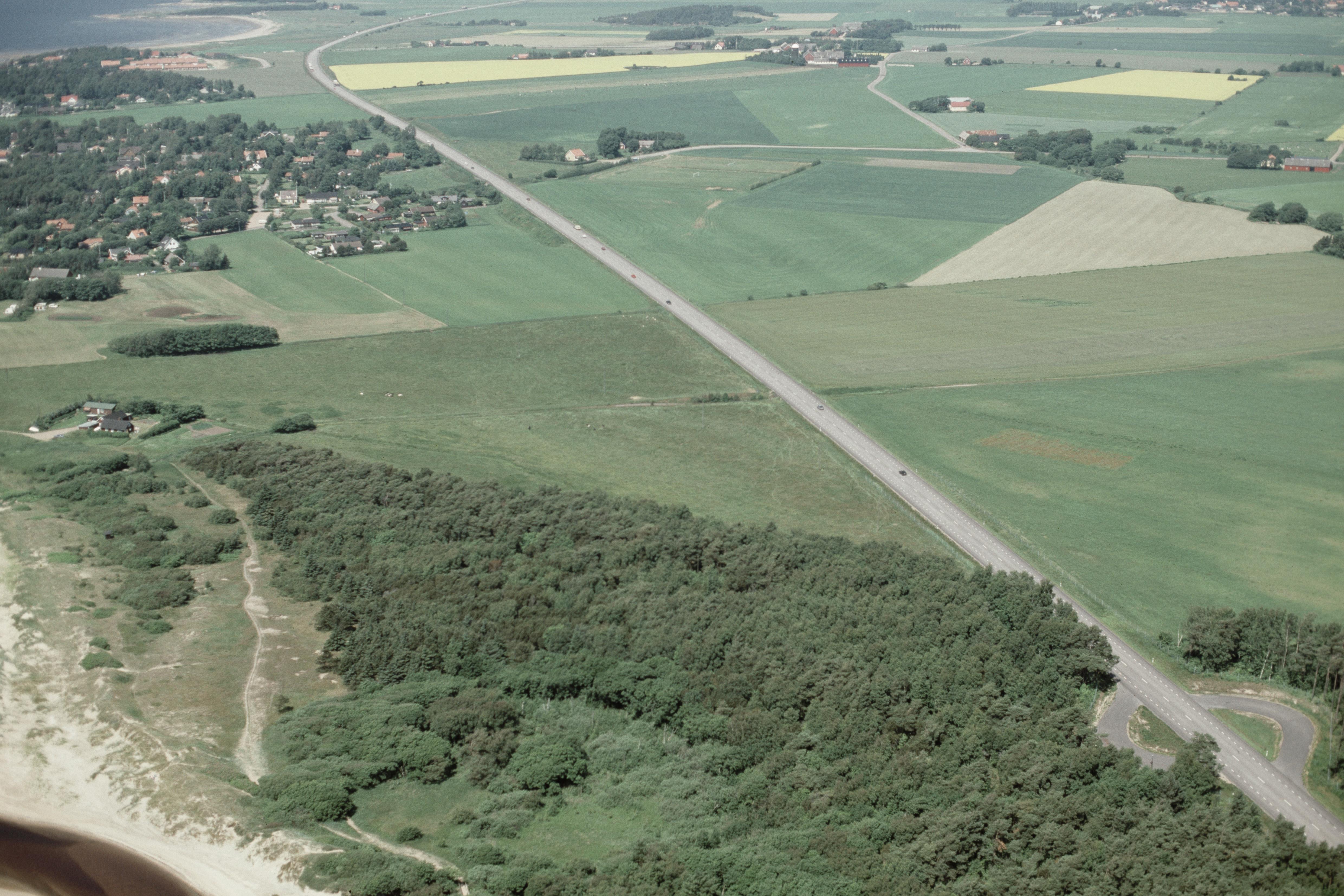 Beskrivning: Beskrivning: Väg E6 vid gränsen mellan socknen Eldsberga och Trönninge vid Gullbranna i norra delen av Laholmsbuktens naturreservat, Laxvik och Påarp i bildens övre del. Bilden är tagen mot (väderstreck): N Fotosyfte: Flygbildsdokumentation