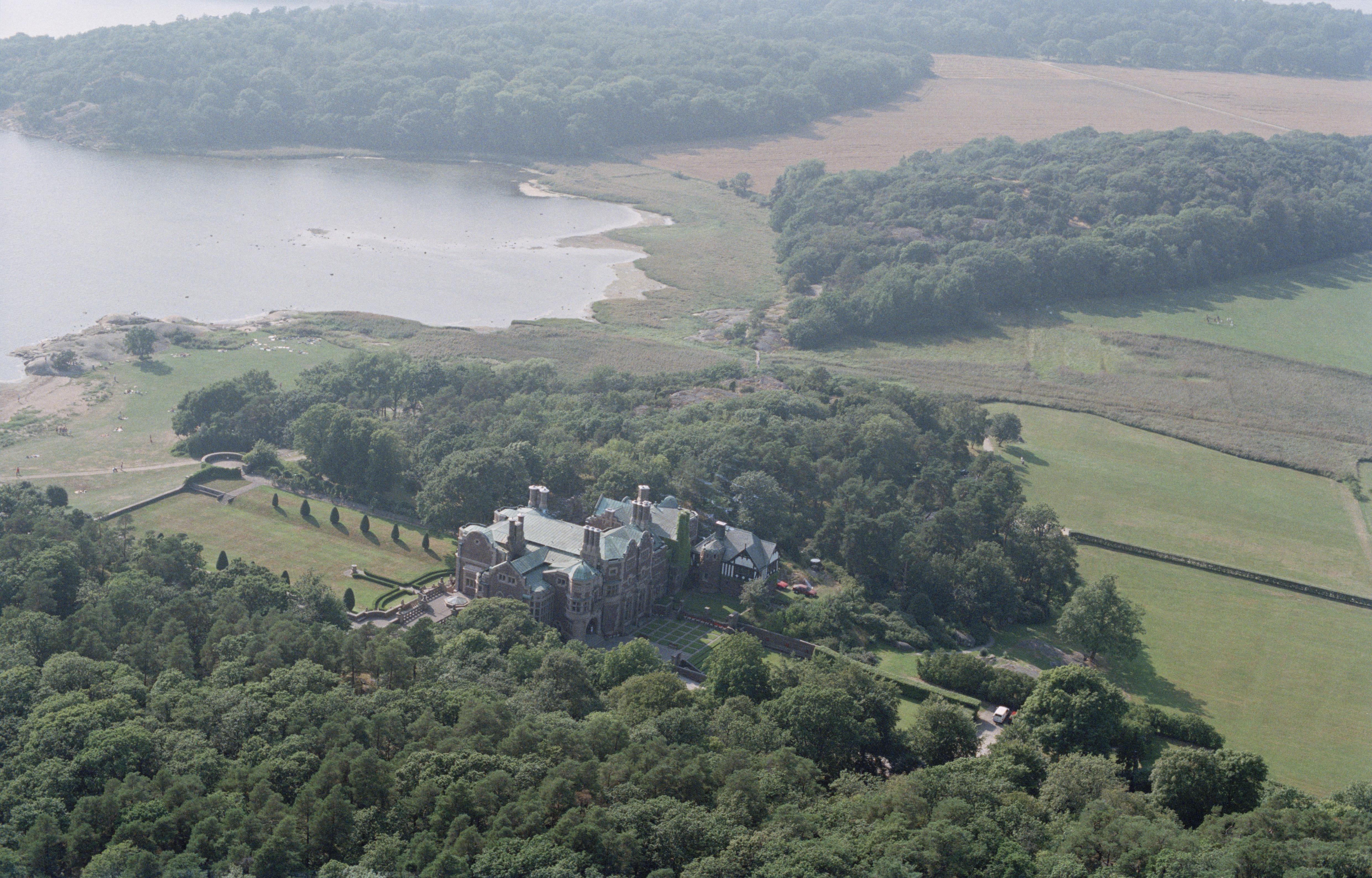 Beskrivning: Tjolöholms slott vid Kungsbackafjorden. Bilden är tagen mot (väderstreck): V