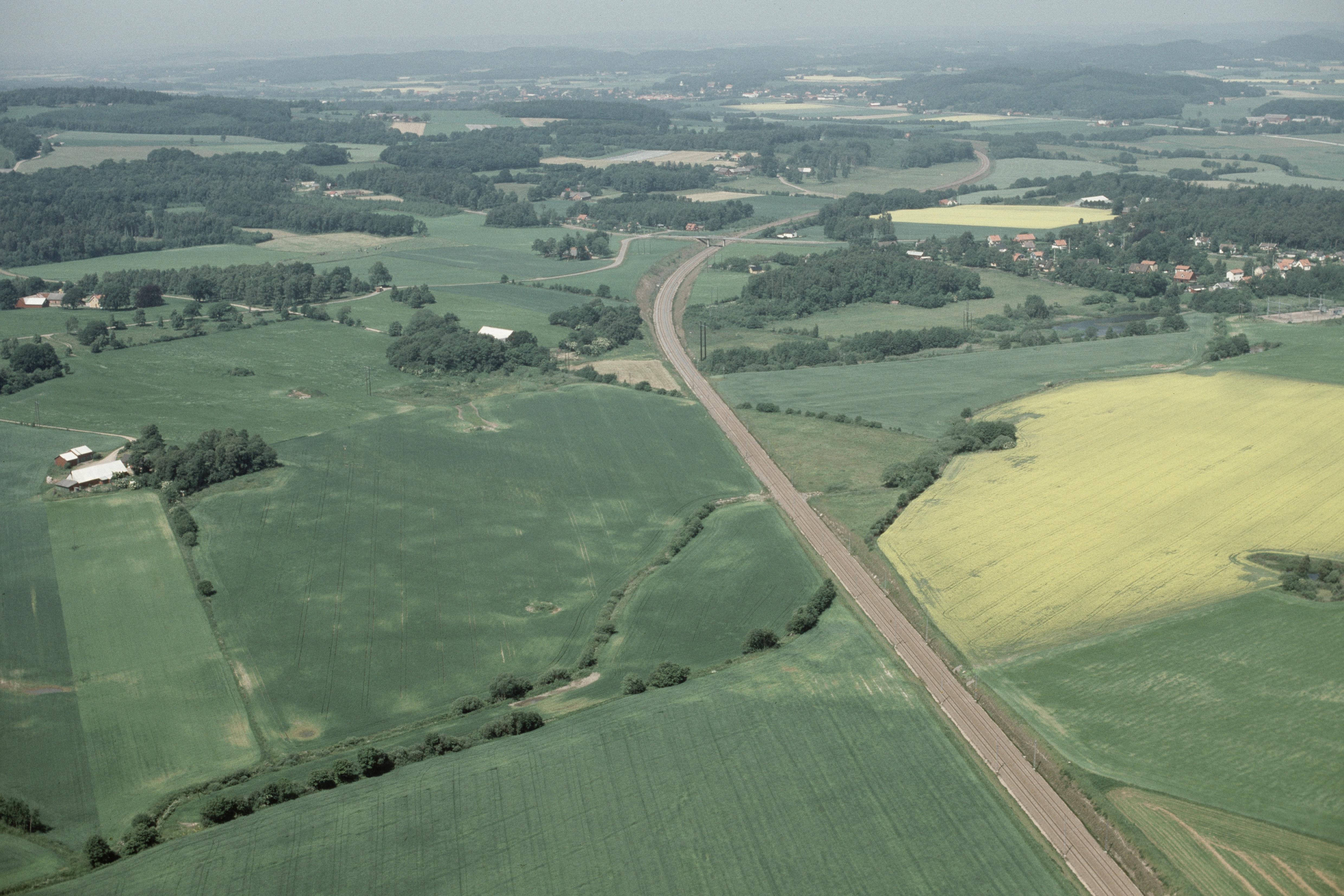 Beskrivning: Vid gränsen mellan socknen Getinge och Rävinge. Områdena Hörsås - Lilla Berg - Öringe, innan bygge av väg E6 mellan Laholm och Slöinge. Högar och fossila åkrar, RAÄnr Getinge 26:1 m.fl. Bilden är tagen mot (väderstreck): NV