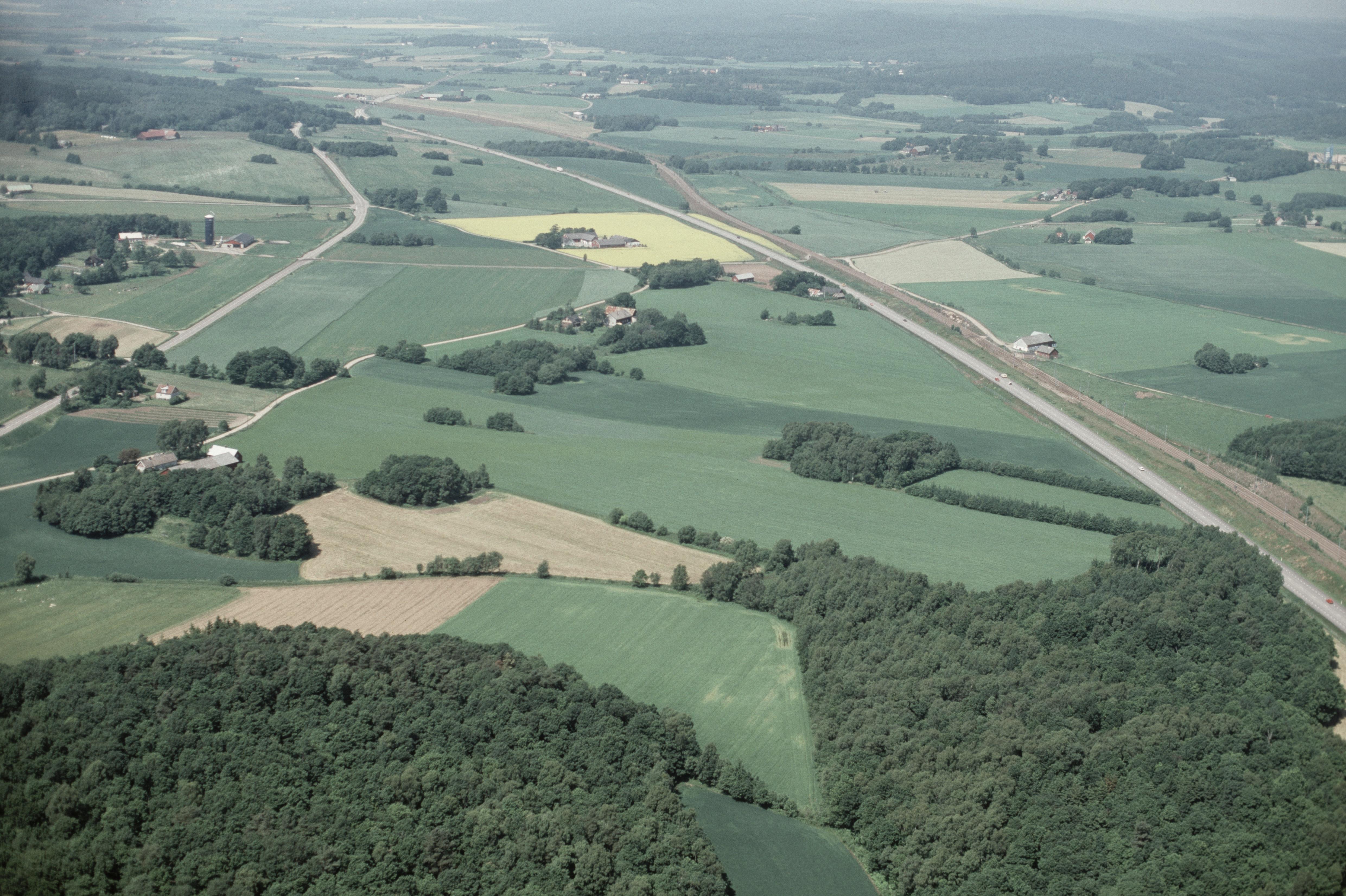 Beskrivning: Bygging av väg E6 mellan Laholm och Slöinge. Bilden är tagen mot (väderstreck): NV