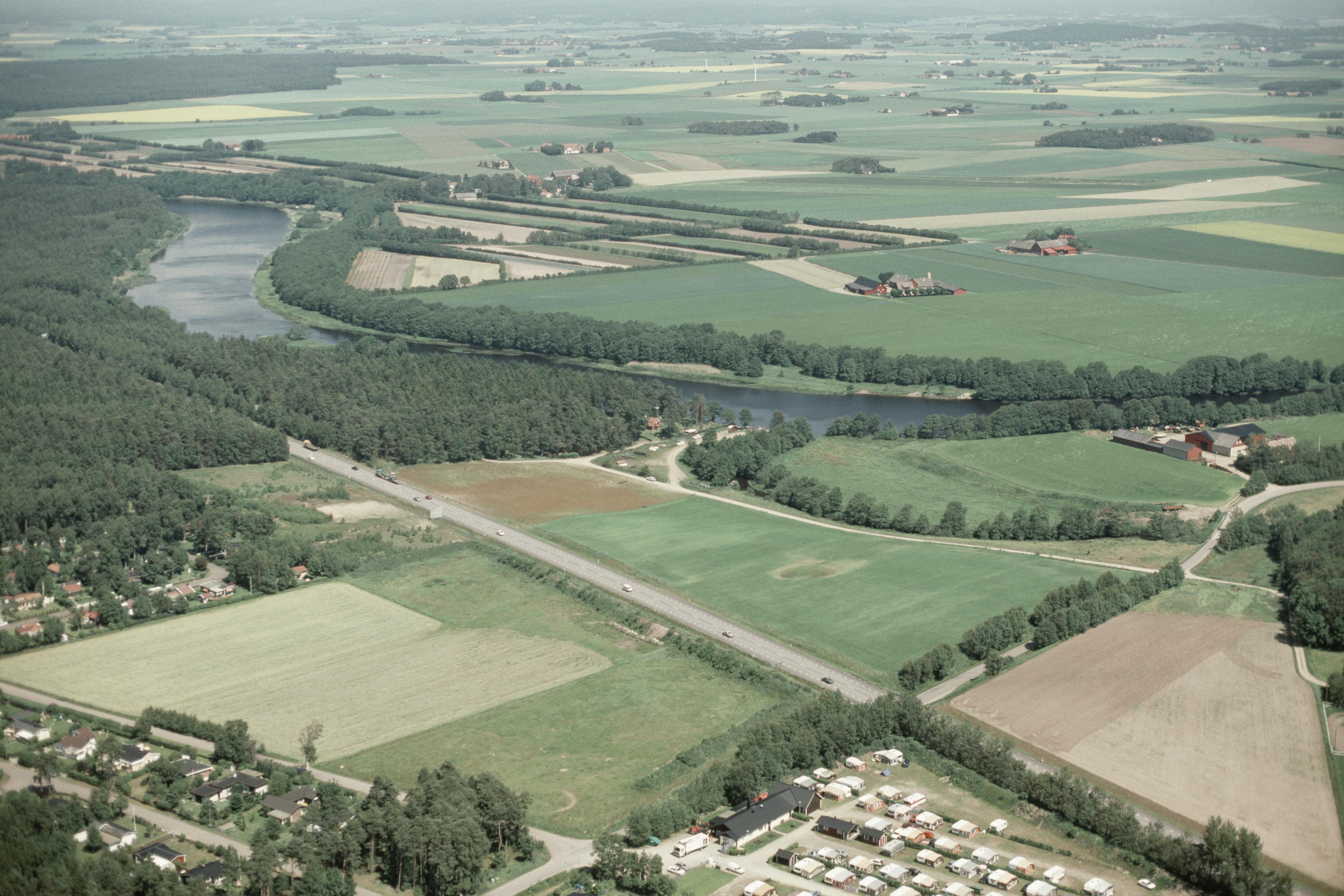 Beskrivning: Beskrivning: Väg E6 och ån Lagan vid Restad. Bilden är tagen mot (väderstreck): NO Fotosyfte: Flygbildsdokumentation