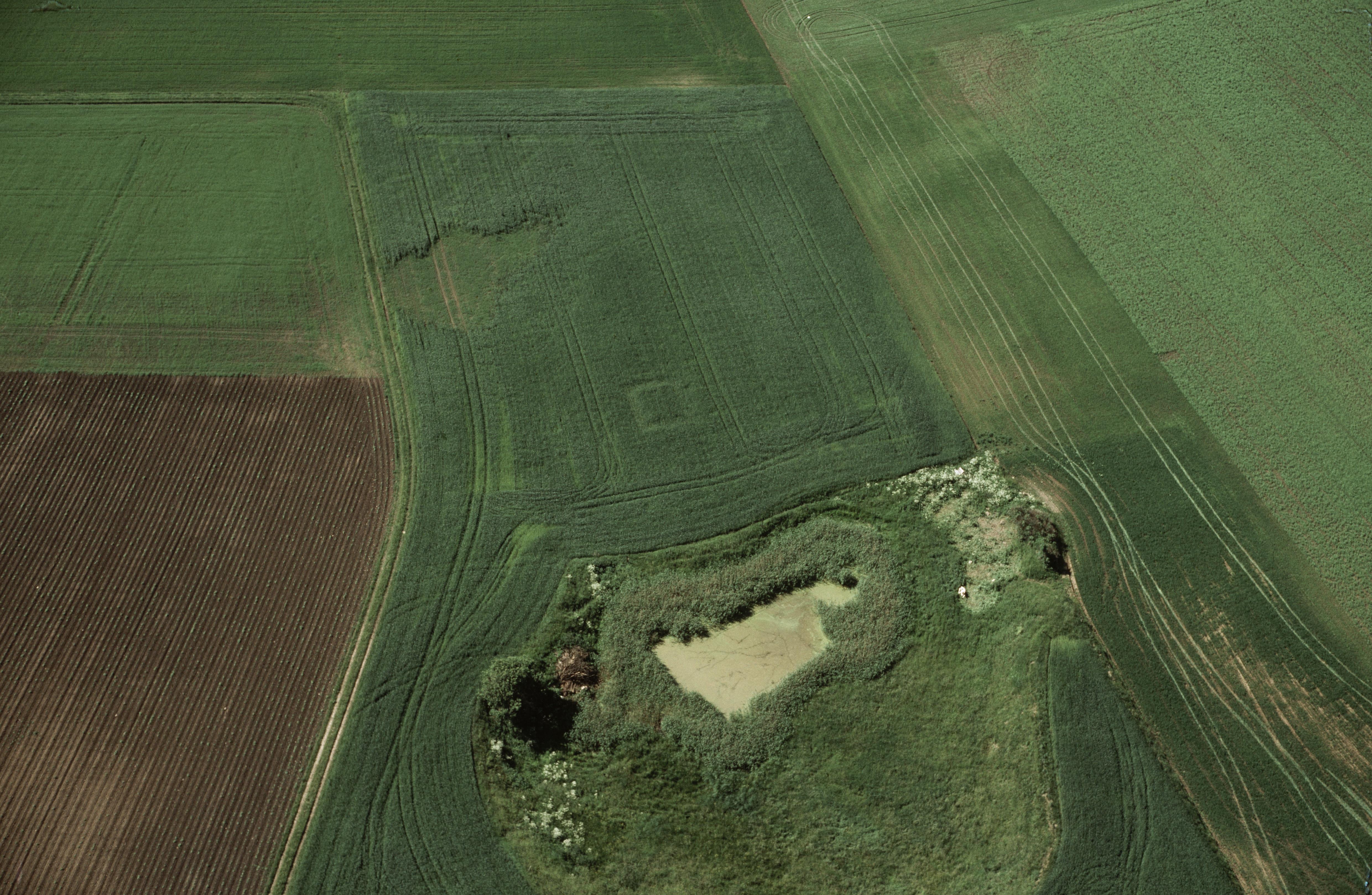Beskrivning: Märgelgrav öster om Ränneslövs ängar, i området Edenberga på nordsidan av Smedjeån, sydväst om gården Mariehill och väster om Ränneslövs kyrkby. Vid bildens mitt en fyrkantig cropmark (husgrund) i åkern. Bilden är tagen mot (väderstreck): SSV