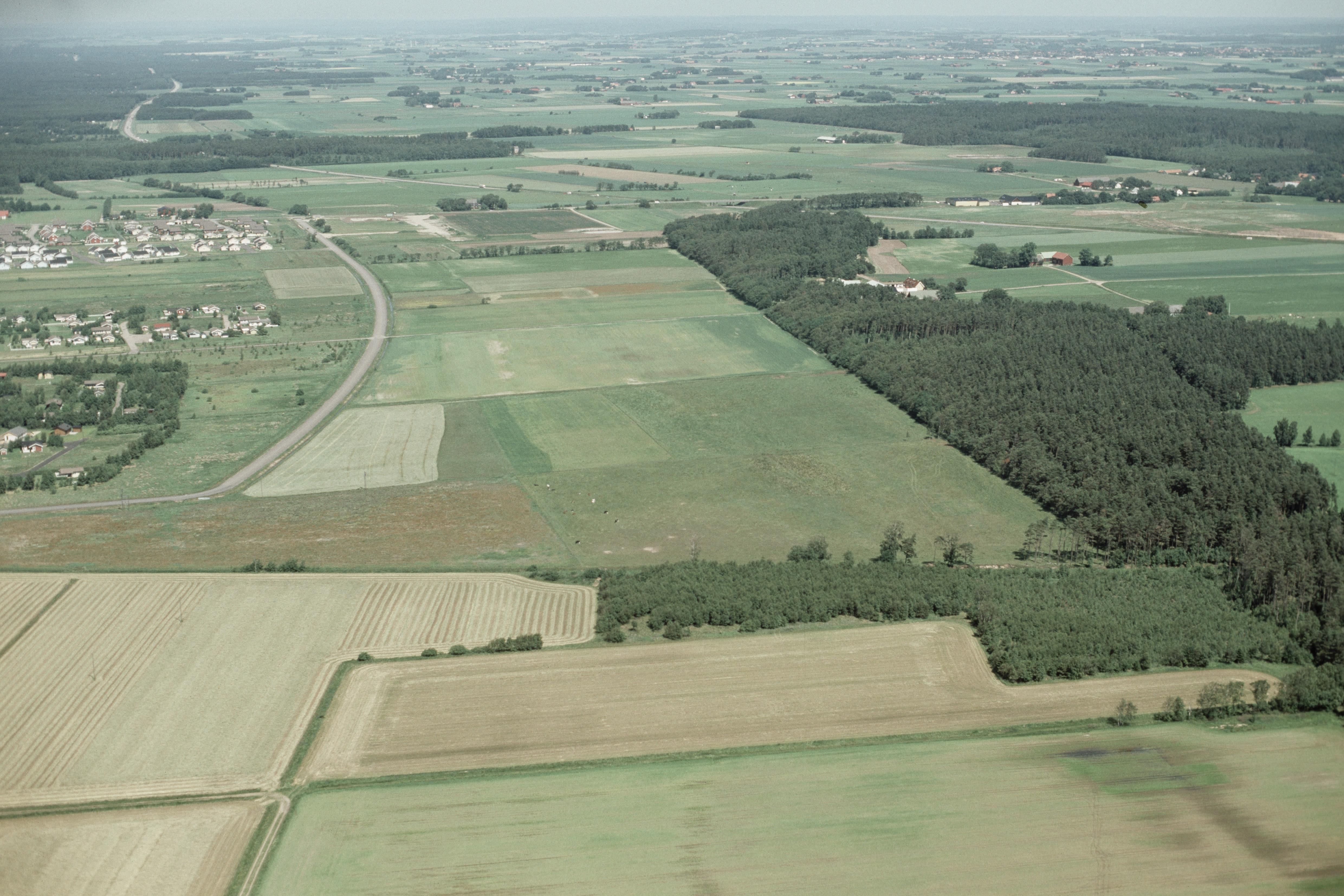 Beskrivning: Väg E6 vid Allarp: planerad ny sträckning Skottorp - Trönninge. Fyndplats RAÄnr Skummeslöv 31:1 vid bildens mitt. Stjärnhem och Sommarbo i bildens övre del. Bilden är tagen mot (väderstreck): NNO