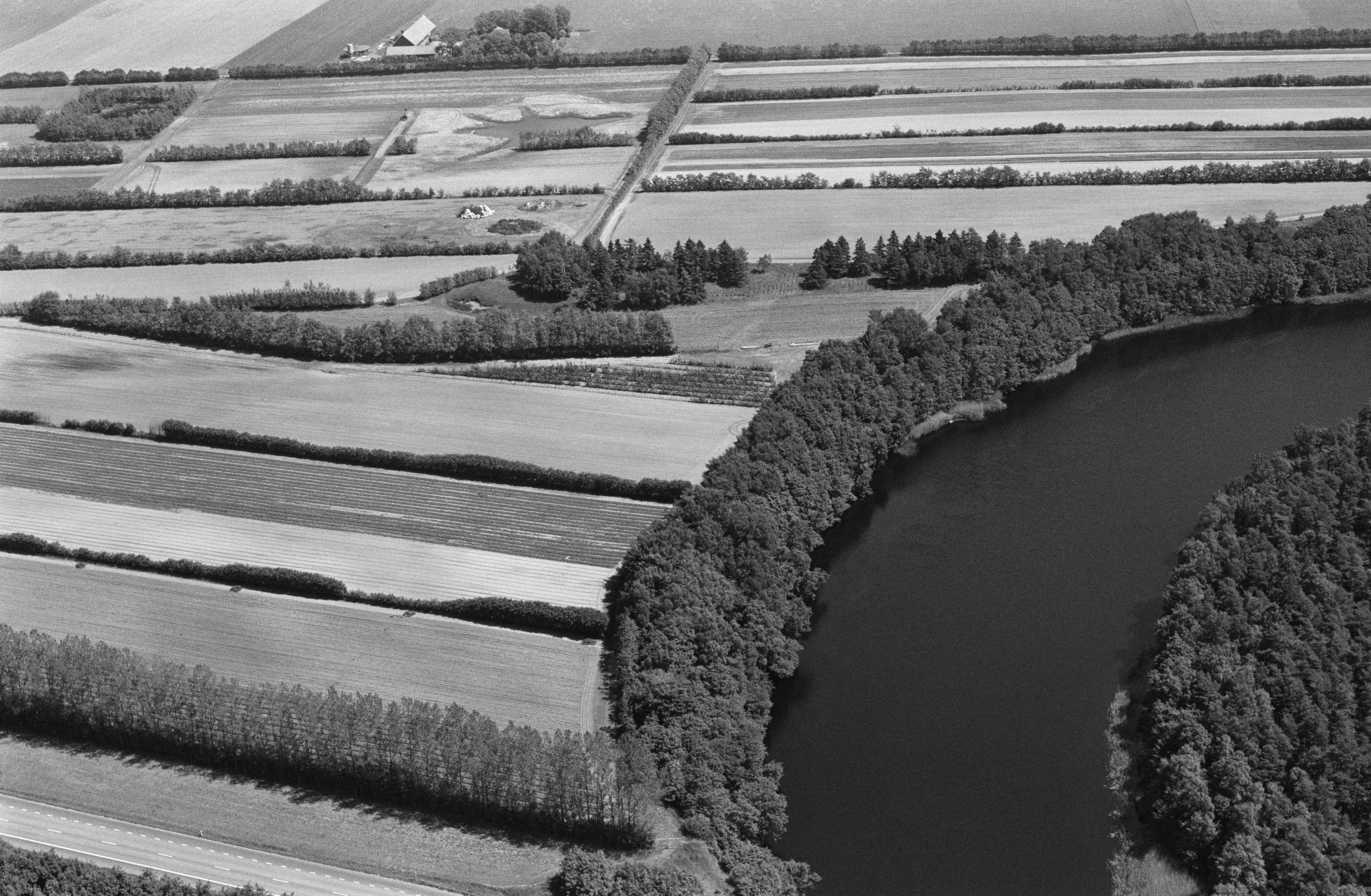 Beskrivning: I bildens mitt högarna RAÄnr Laholm 4:1-2 vid ån Lagan i norra delen av Restads by. Bilden är tagen mot (väderstreck): Ö