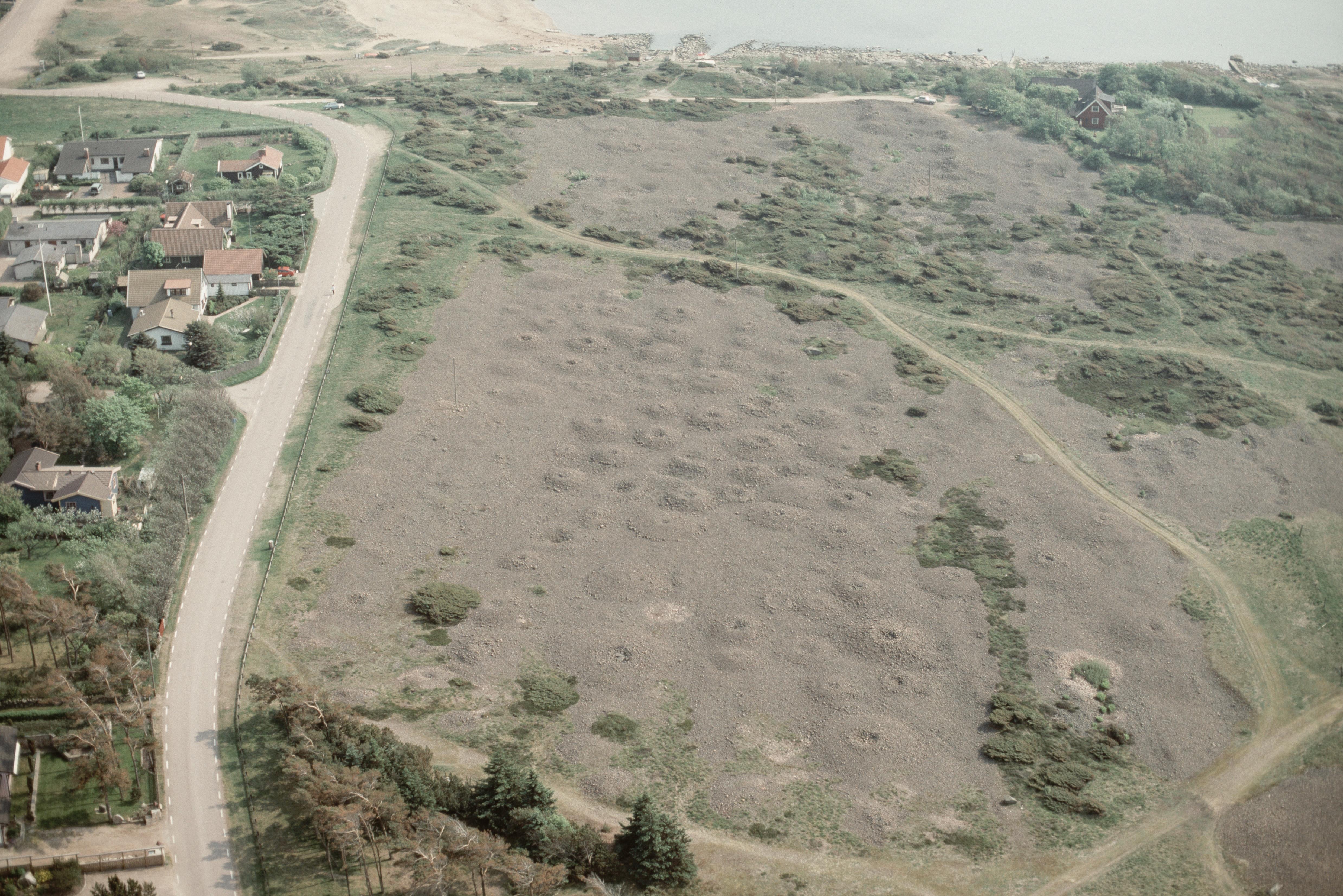 Beskrivning: Påarps tätort. Gravfält "Sänke hög" RAÄnr Trönninge 9:1 vid bildens mitt. Bilden är tagen mot (väderstreck): SV