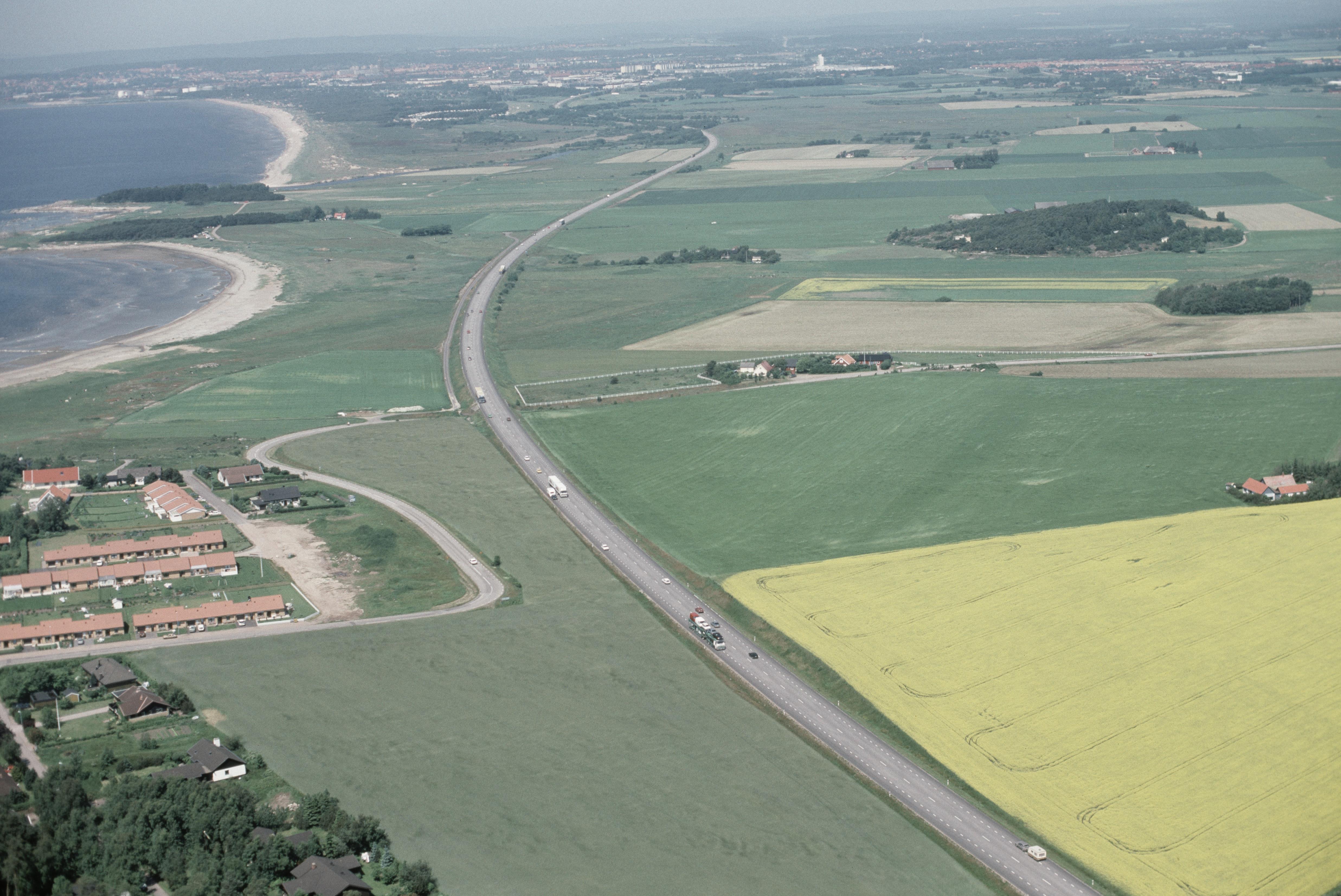 Beskrivning: Väg E6 i norra delen av Påarp. I bildens övre del Trönningeån och Hagöns naturreservat i Halmstads socken. Bilden är tagen mot (väderstreck): NNV