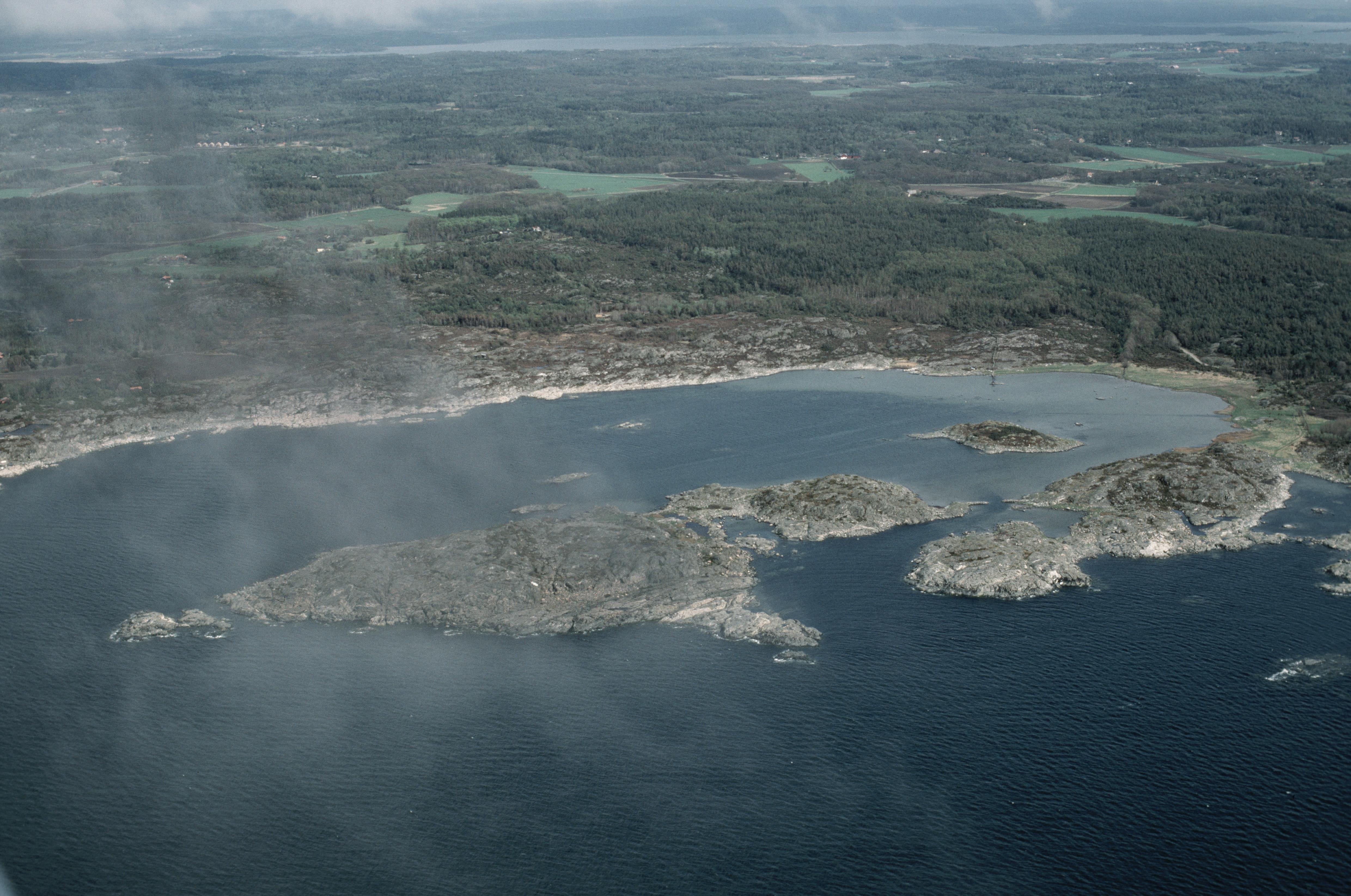 Beskrivning: Tomtningar och fiskelägeslämningar. Fiskeläge RAÄnr Vallda 61:1 på udden till höger. På Vinbärsholmen (under bildens mitt) bl.a. fiskeläge RAÄnr Vallda 60:1. Bilden är tagen mot (väderstreck): OSO