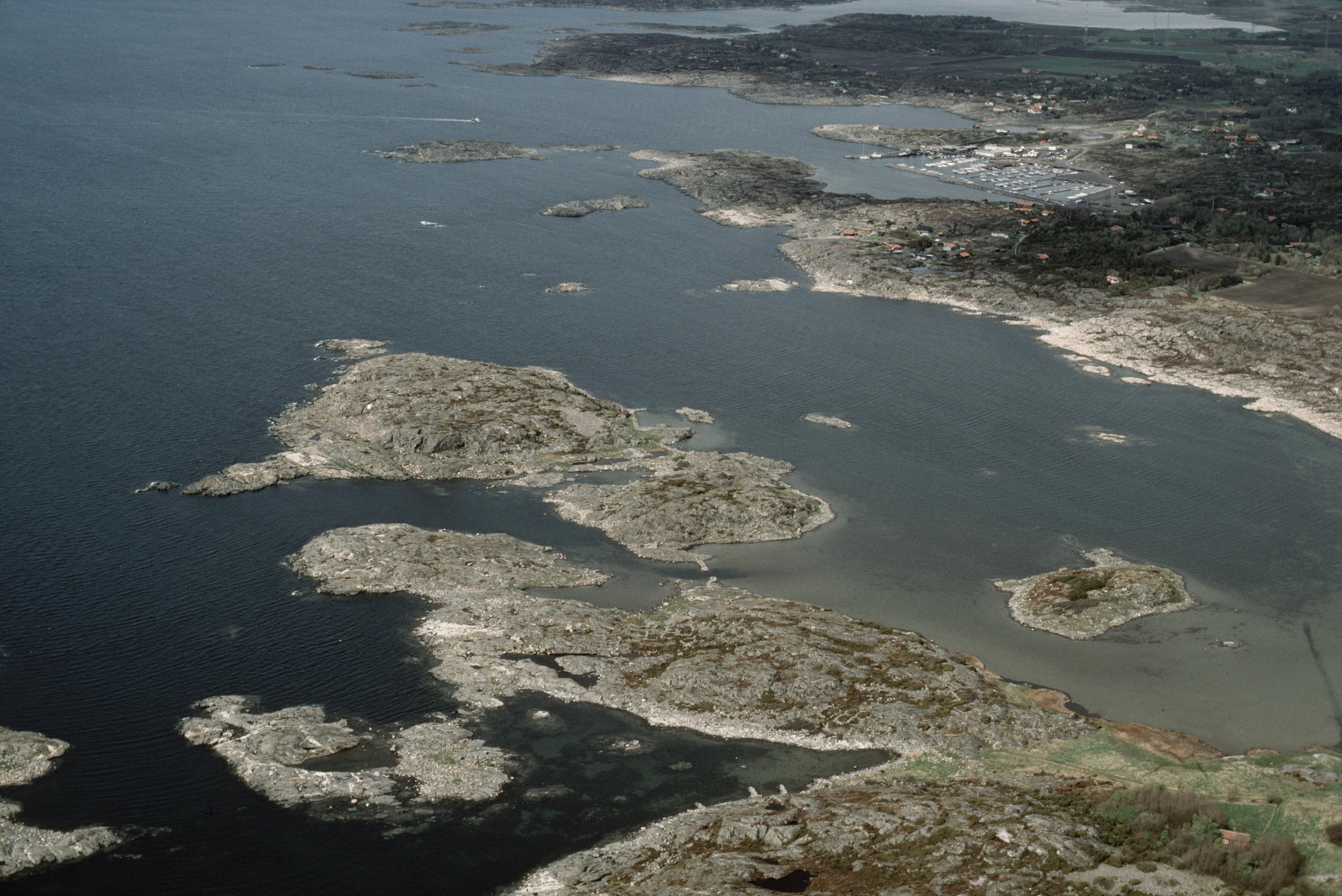 Beskrivning: Tomtningar och fiskelägeslämningar. Fiskeläge RAÄnr Vallda 61:1 på udden i bildens nedre del. På Vinbärsholmen (vid bildens mitt) fiskeläge RAÄnr Vallda 60:1 m.fl. Bilden är tagen mot (väderstreck): N