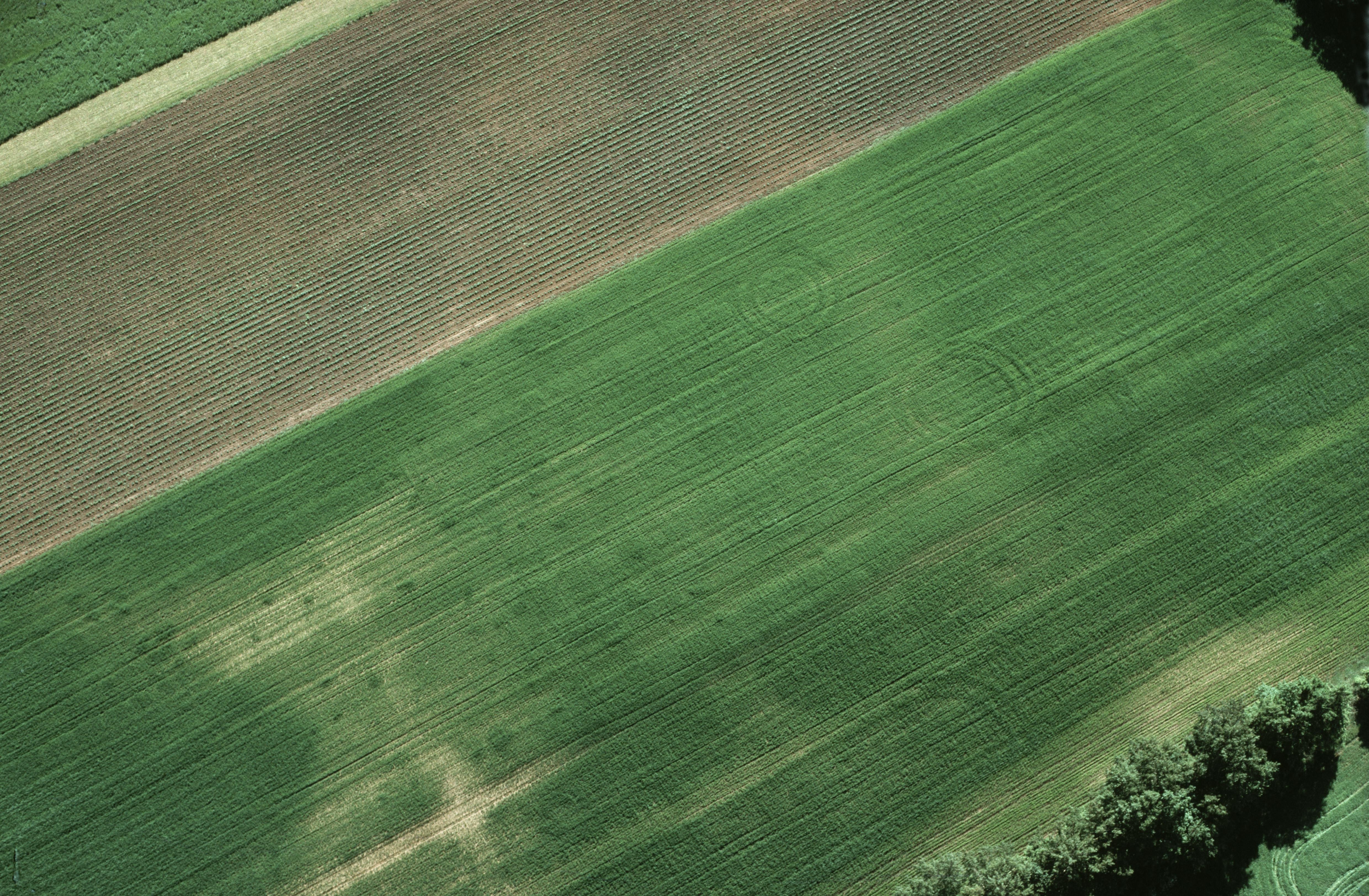 Beskrivning: Gård vid Hishultsvägen i östra delen av tätorten Våxtorp. Cropmarks i åker. Bilden är tagen mot (väderstreck): NO