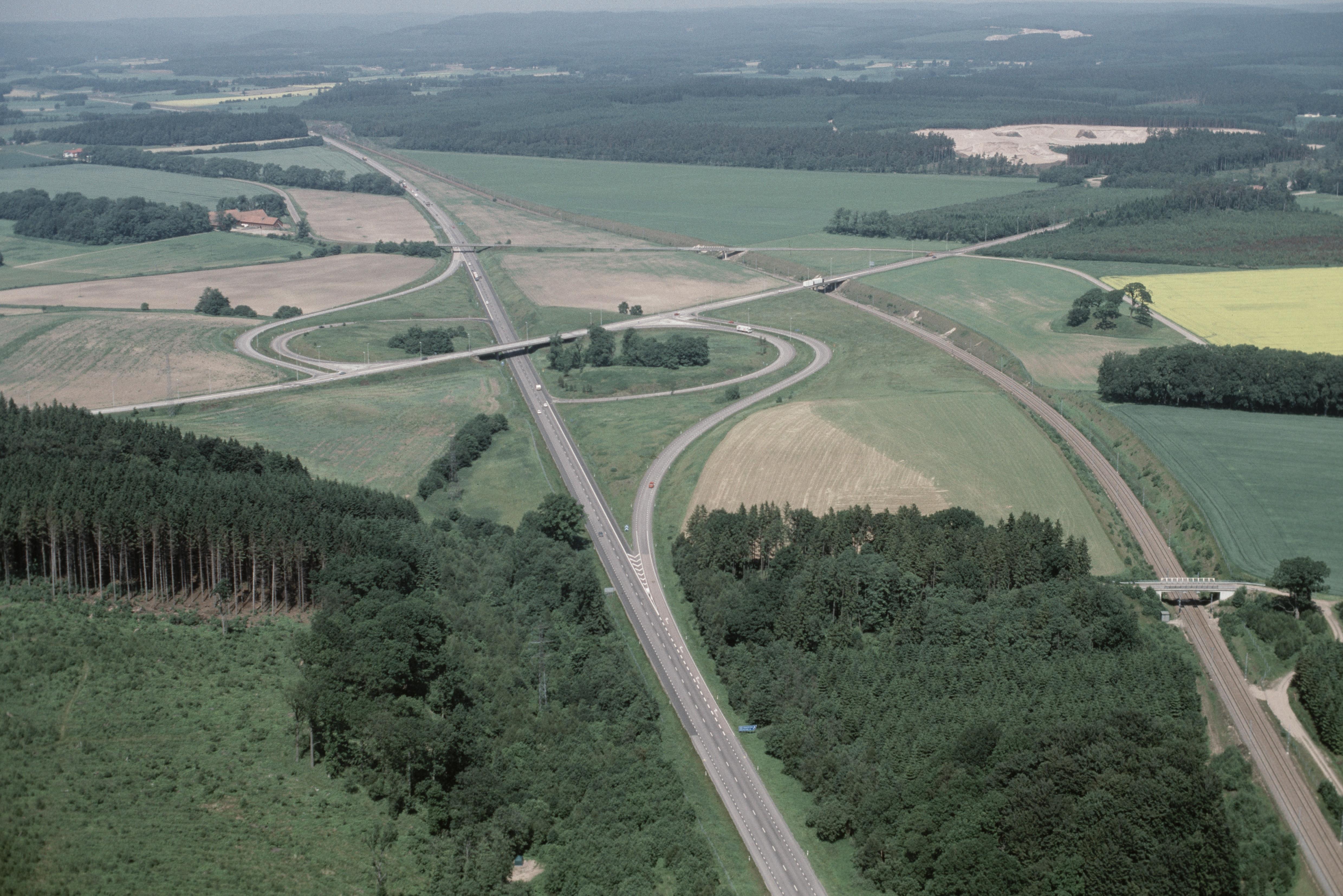 Beskrivning: Till höger om bildens mitt gravhög Ivars kulle RAÄnr Övraby 5:1 vid trafikplats väg E6 vid Kårarp - Sperlingsholm (skrivs även Sperlingholm). Bilden är tagen mot (väderstreck): N