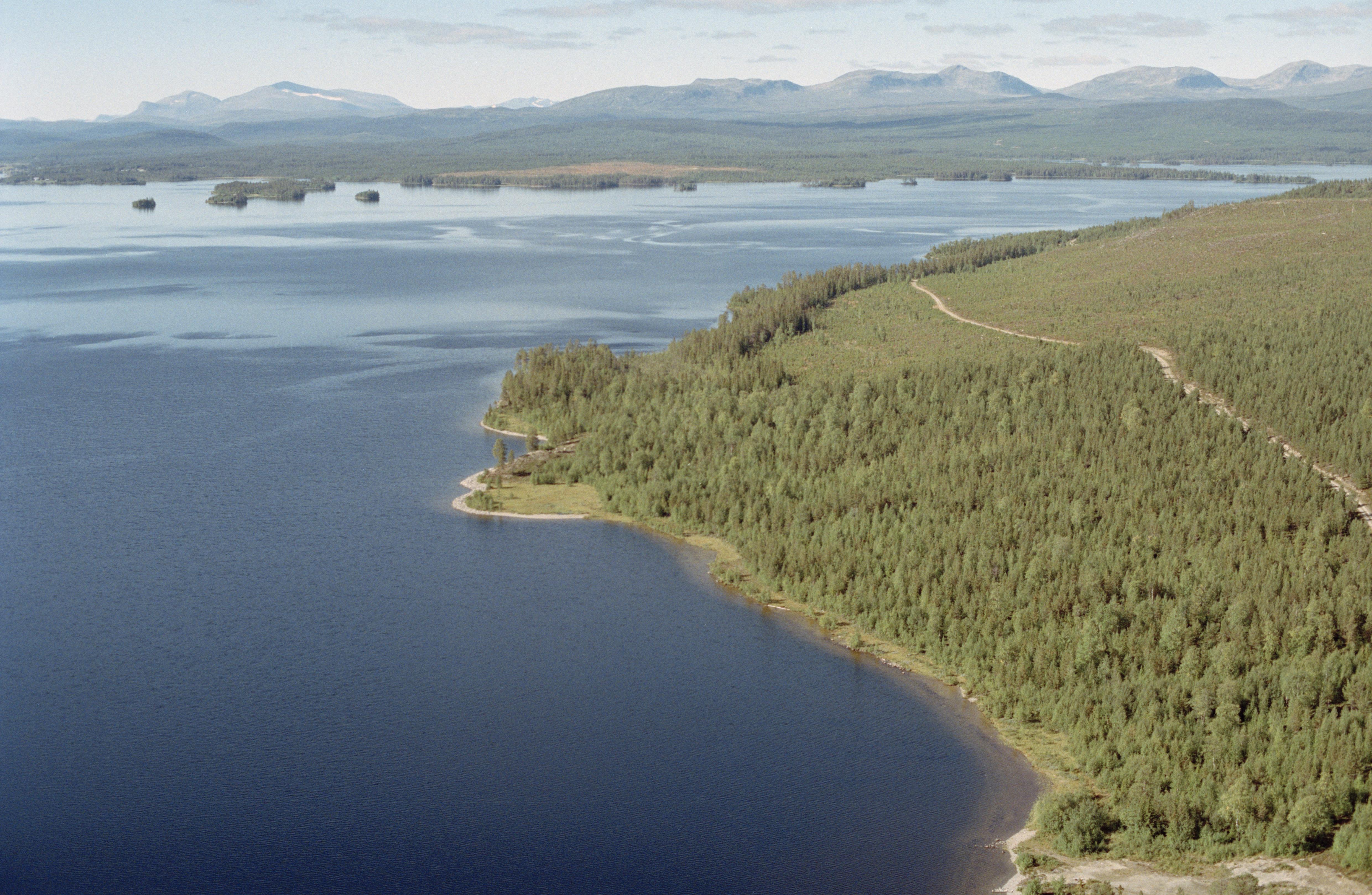 Beskrivning: Vid bildens mitt gravfält Krankmårtenhögen (skrivs även (Krank-Mårtenhögen) RAÄnr Storsjö 9:1 vid Storsjön. I området även boplats RAÄnr Storsjö 154:1 och 254:1, fångstgrop Storsjö 155:1 m.m. Bilden är tagen mot (väderstreck): VNV