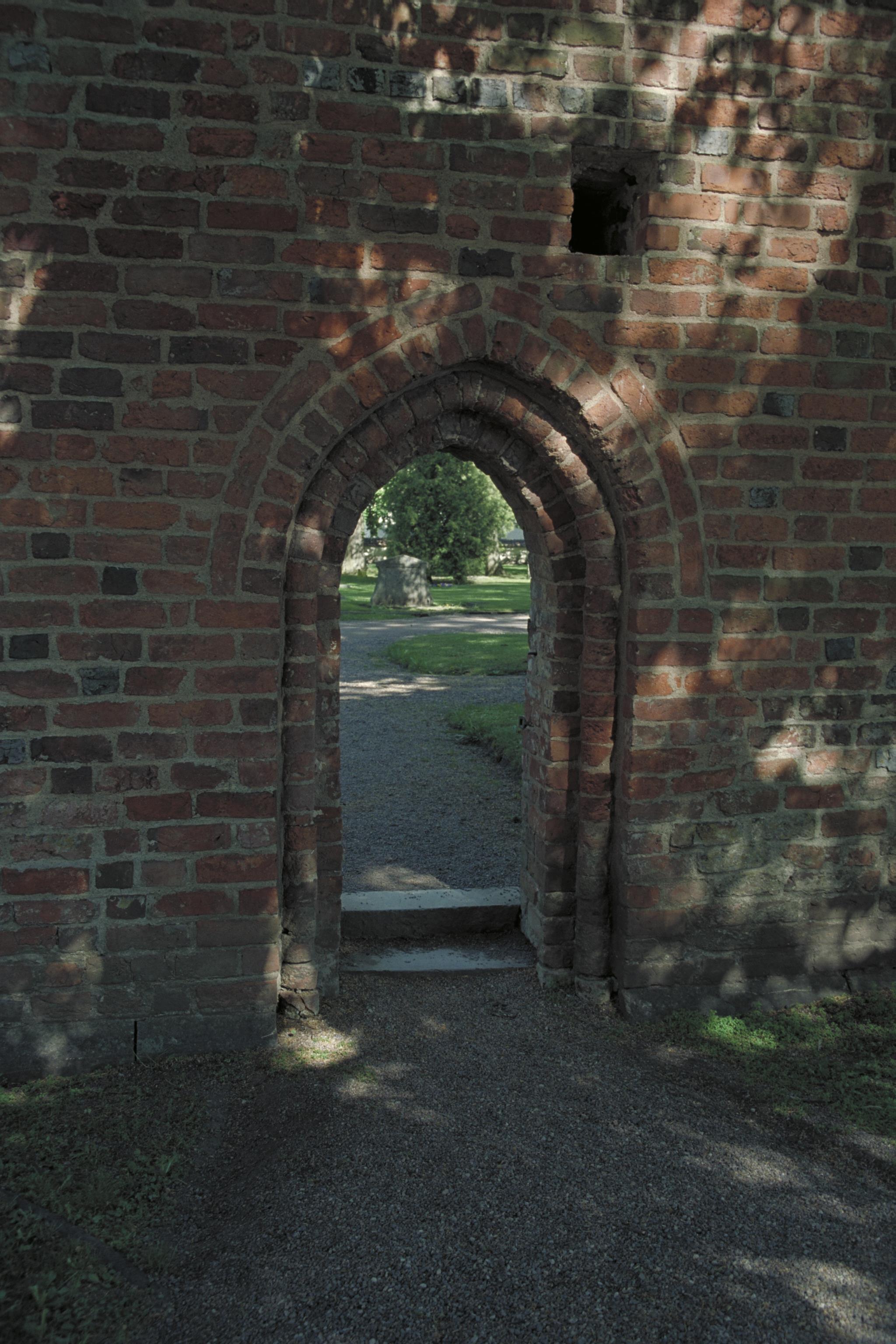 Beskrivning: Portal i mur i området utanför Östgöta kavalleriregementes trossbod.