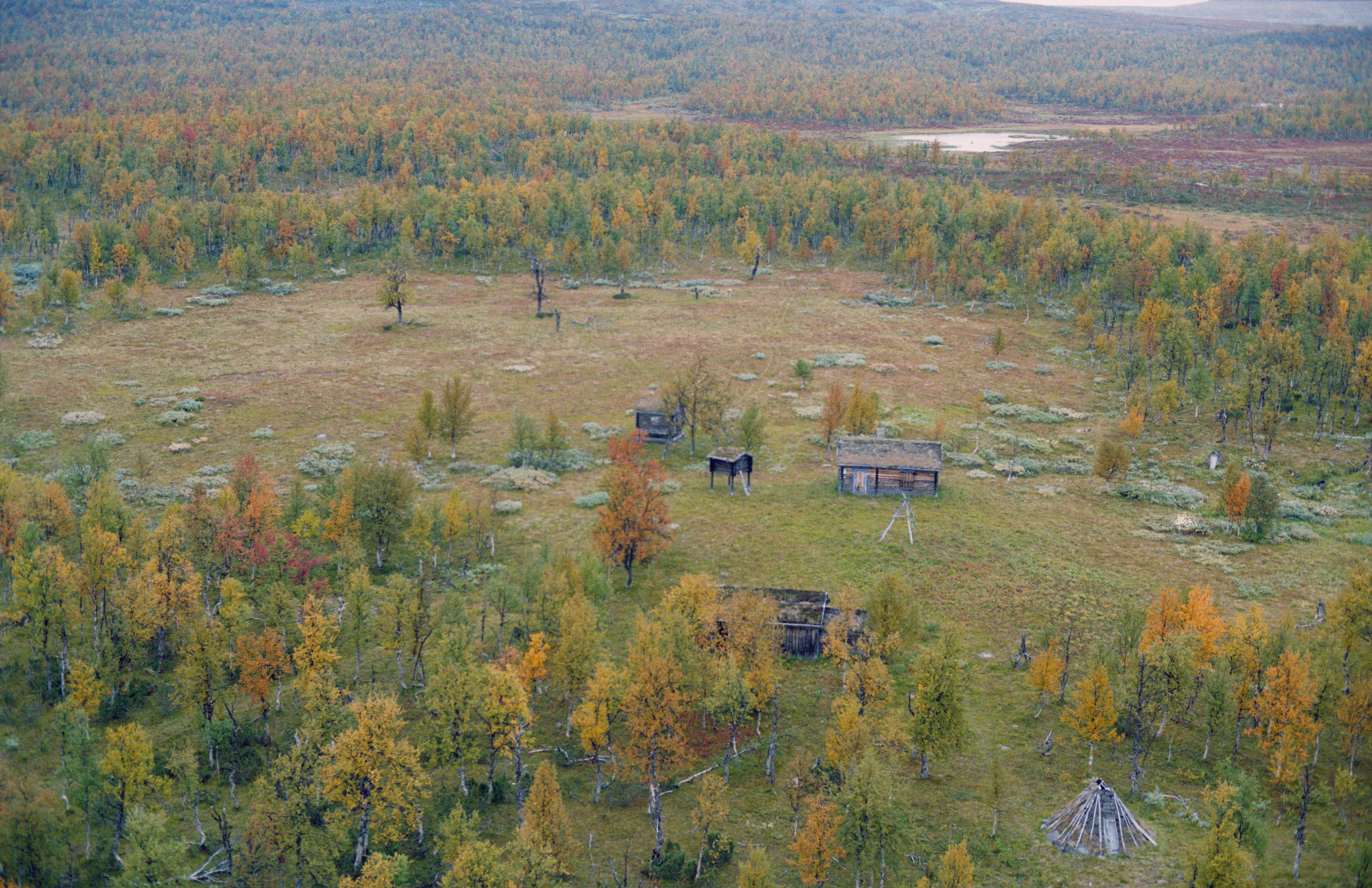 Beskrivning: Rusa sameviste (Ruvssá) på nordsidan av sjön Överst-Juktan. Området ingår i Vindelfjällens naturreservat. Bilden är tagen mot (väderstreck): NO