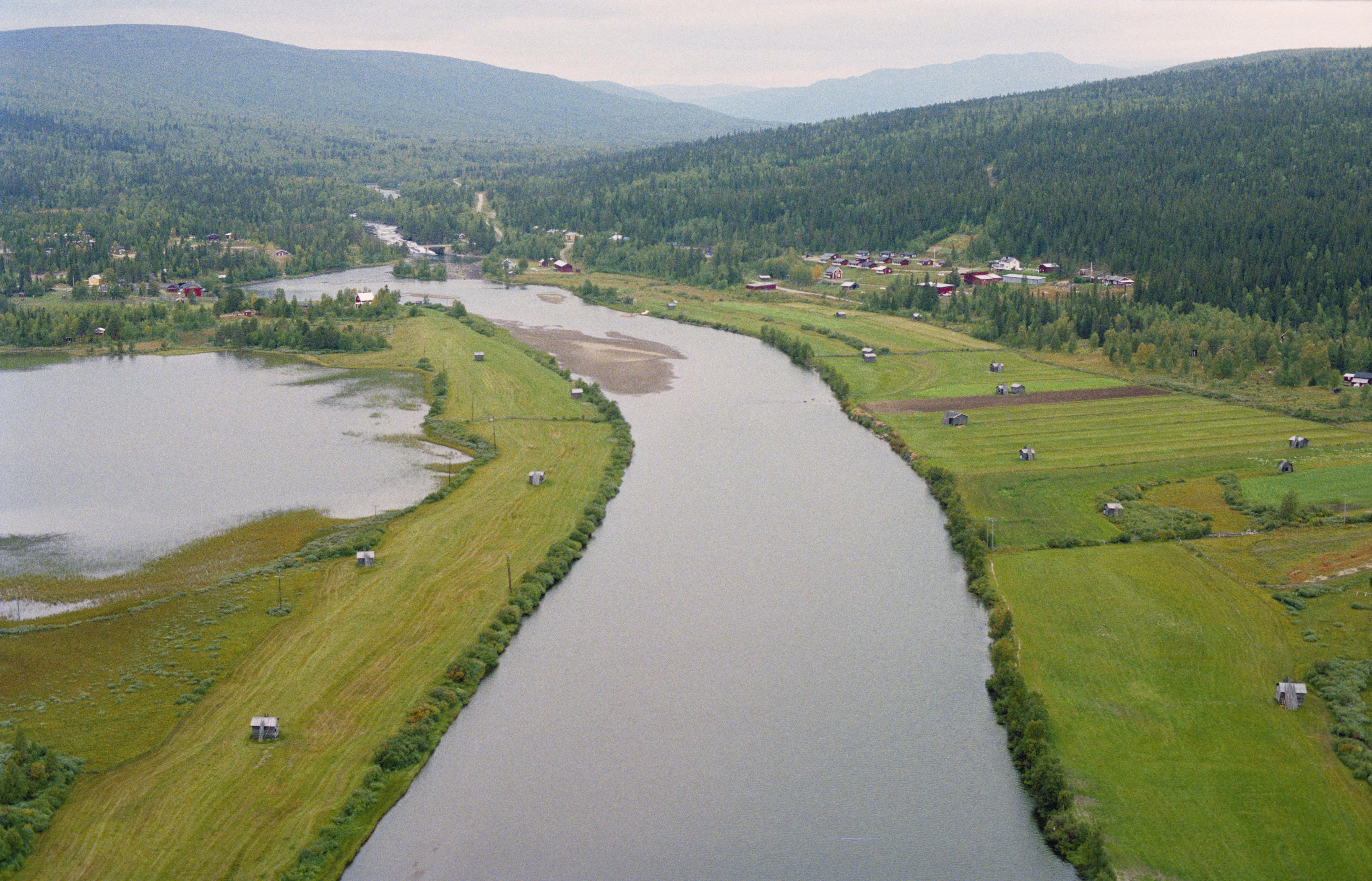 Beskrivning: Norr om Ammarnäs kyrkby (Gávtjávrrie). Område med ängslador i Vindelälvens (Vidduoljiennuo) dalgång. Noltjärnen till vänster. Boplats RAÄnr Sorsele 551:1 vid älvkanten uppe till vänster. Bilden är tagen mot (väderstreck): NNV