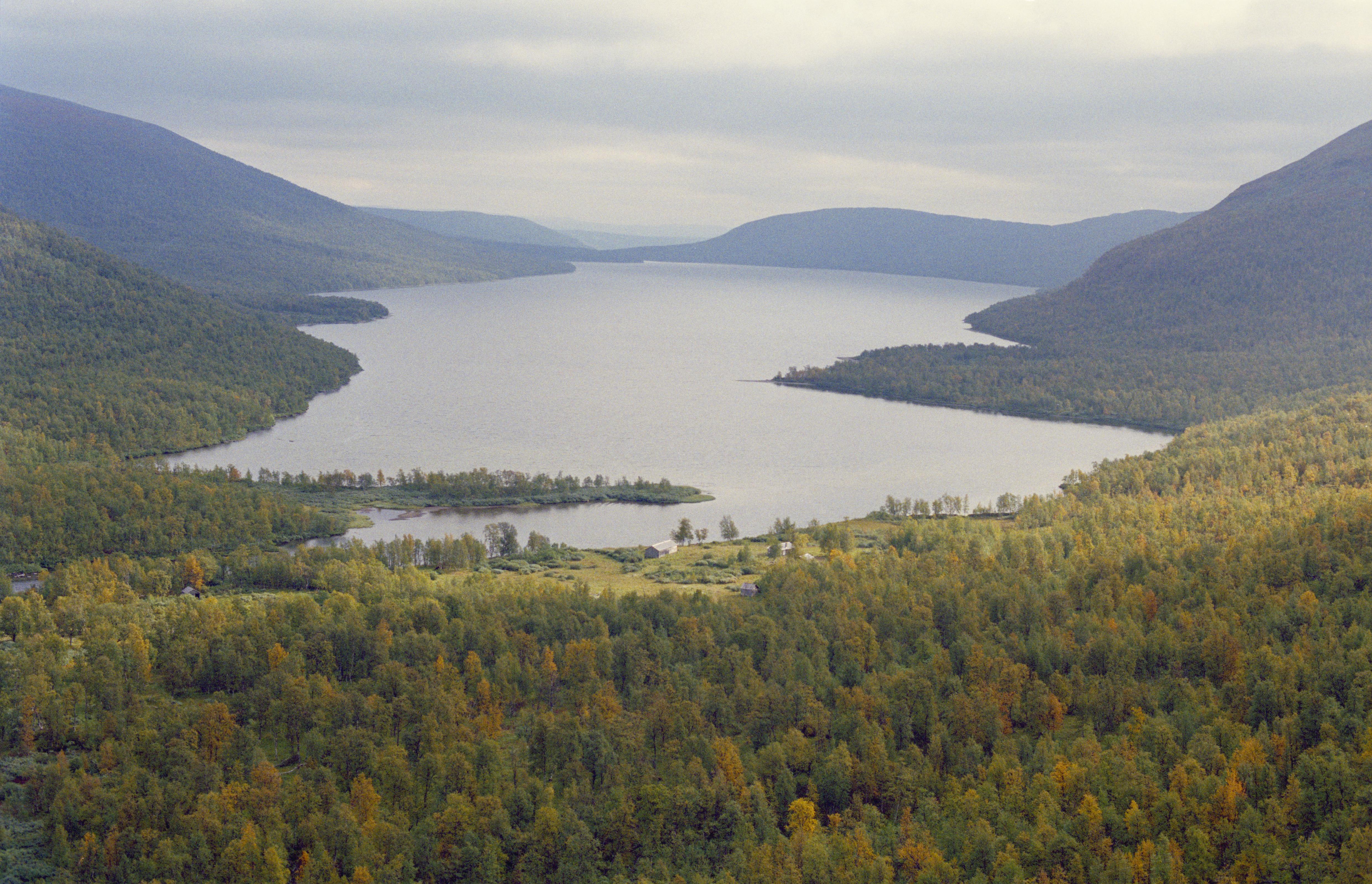 Beskrivning: I bildens nedre del området Matsokudden vid sjön Stor-Tjulträsket (Stuora Givnjuo). Till höger om bildens mitt Dårraudden (Dåránjuoná) med fyndplats RAÄnr Sorsele 925:1. Området Rödingvik i bildens vänstra kant. Bilden är tagen mot (väderstreck): ONO