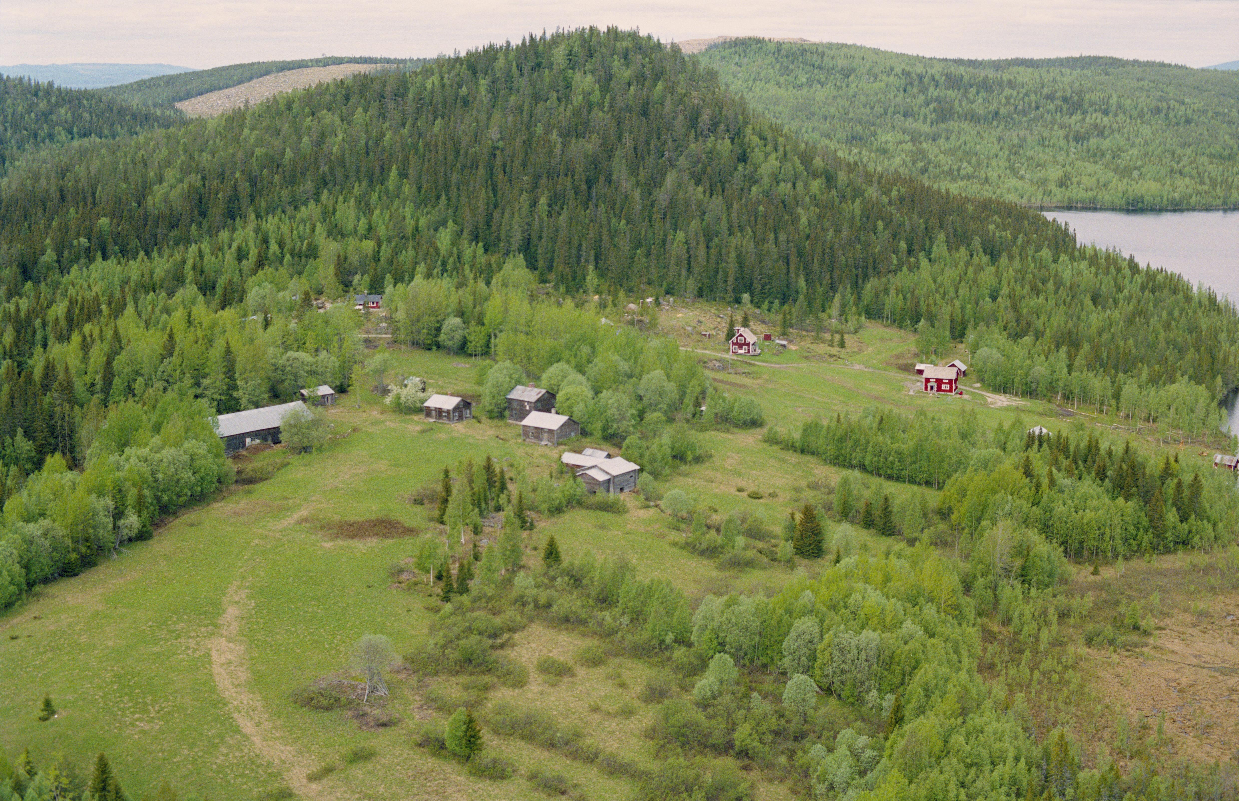 Beskrivning: Byn Väster-Storsjö under berget Hemkullen vid Storsjön. Bilden är tagen mot (väderstreck): VNV