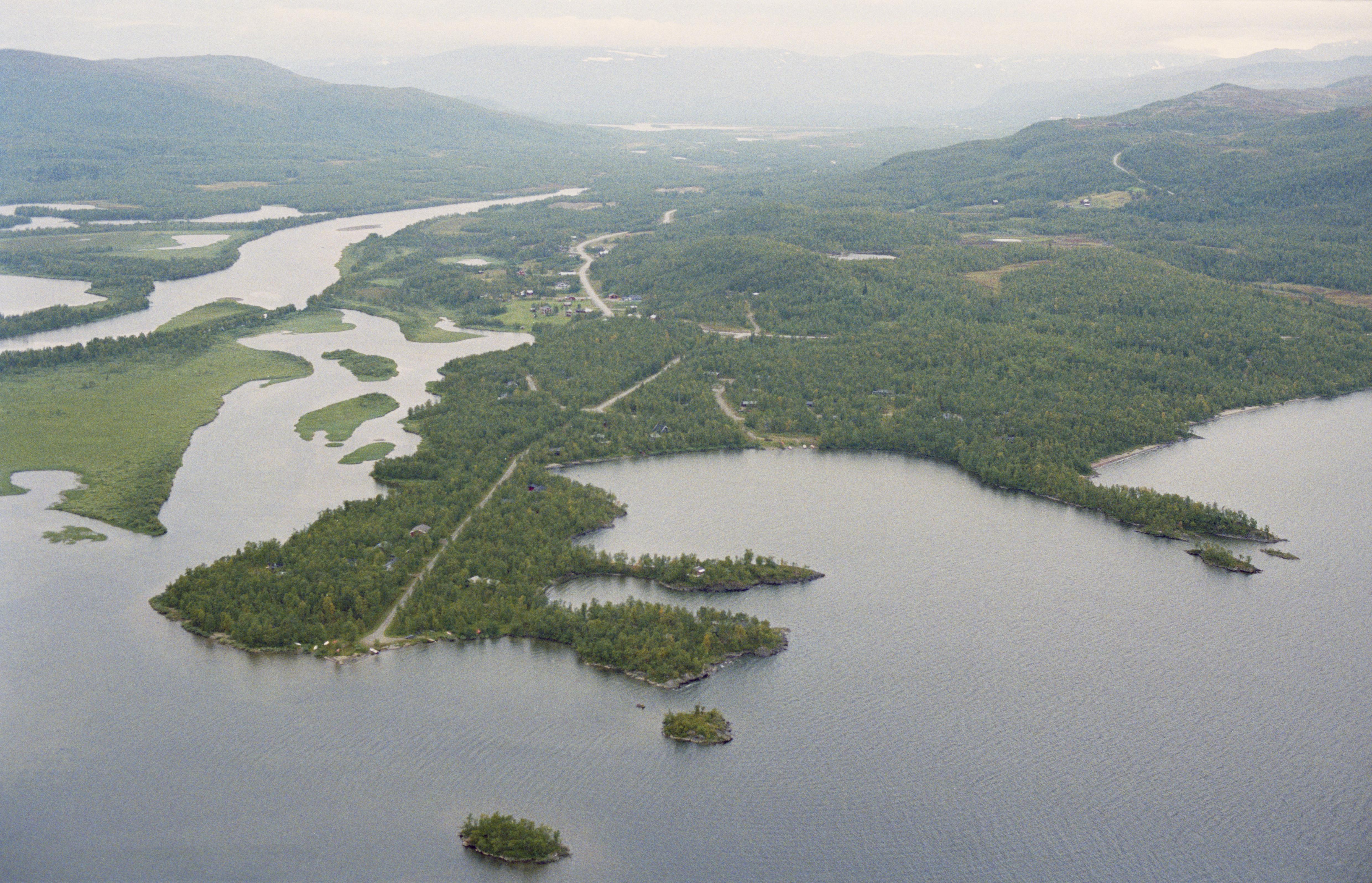 Beskrivning: Umeälvens inflöde i sjön Stor-Laisan (Stoere Laajsere), söder om byn Laisholm. I bildens nedre del Gammställnäset med boplats RAÄnr Tärna 89:1, kåta Tärna 176:1, husgrund Tärna 177:1, m.m. Bilden är tagen mot (väderstreck): NV