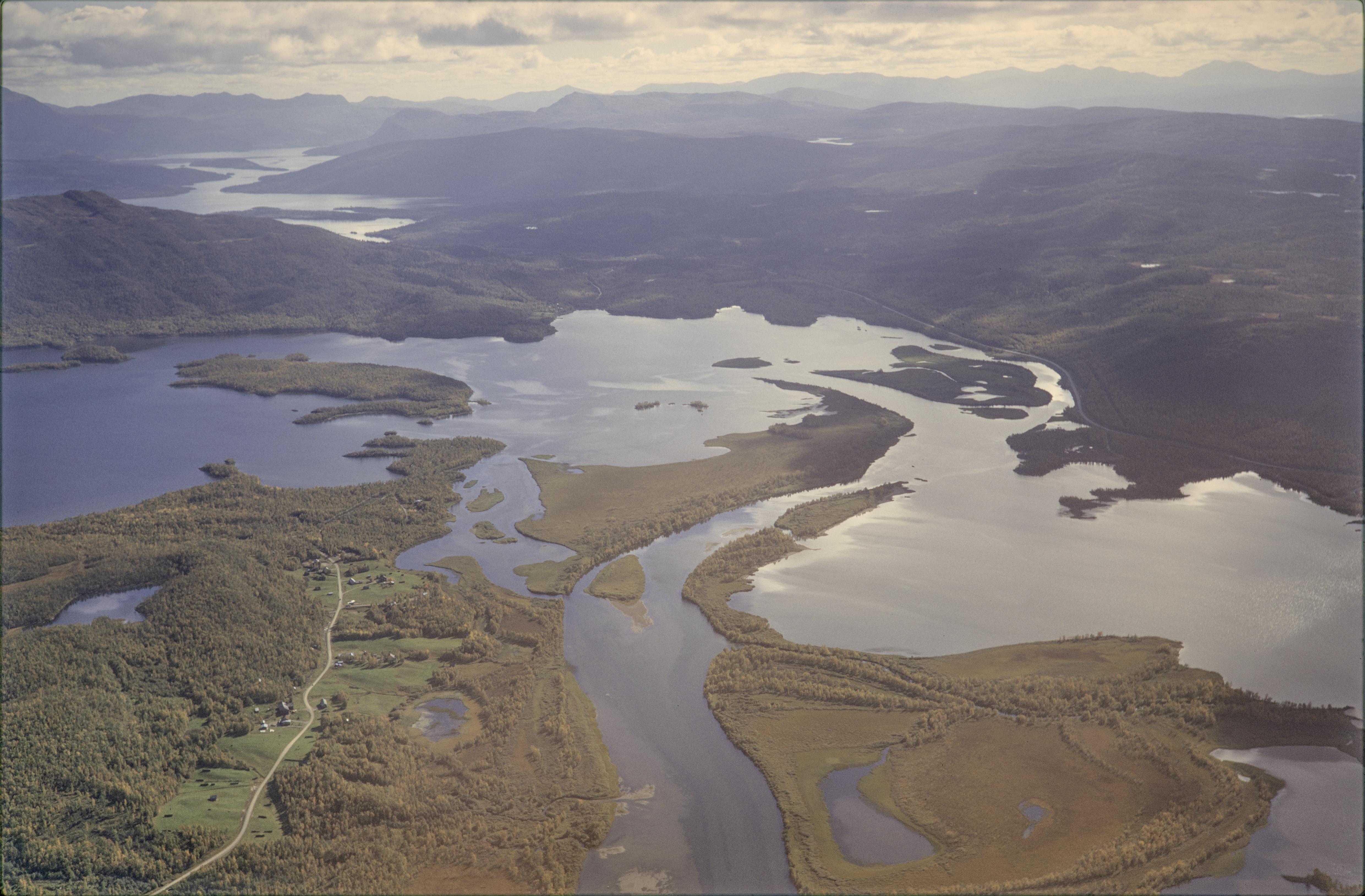Beskrivning: Umeälvens inflöde i sjön Stor-Laisan (Stoere Laajsere) till höger. Gammställnäset med boplats RAÄnr Tärna 89:1, kåta Tärna 176:1, husgrund Tärna 177:1, m.m. Området är söder om byn Laisholm. Bilden är tagen mot (väderstreck): SO